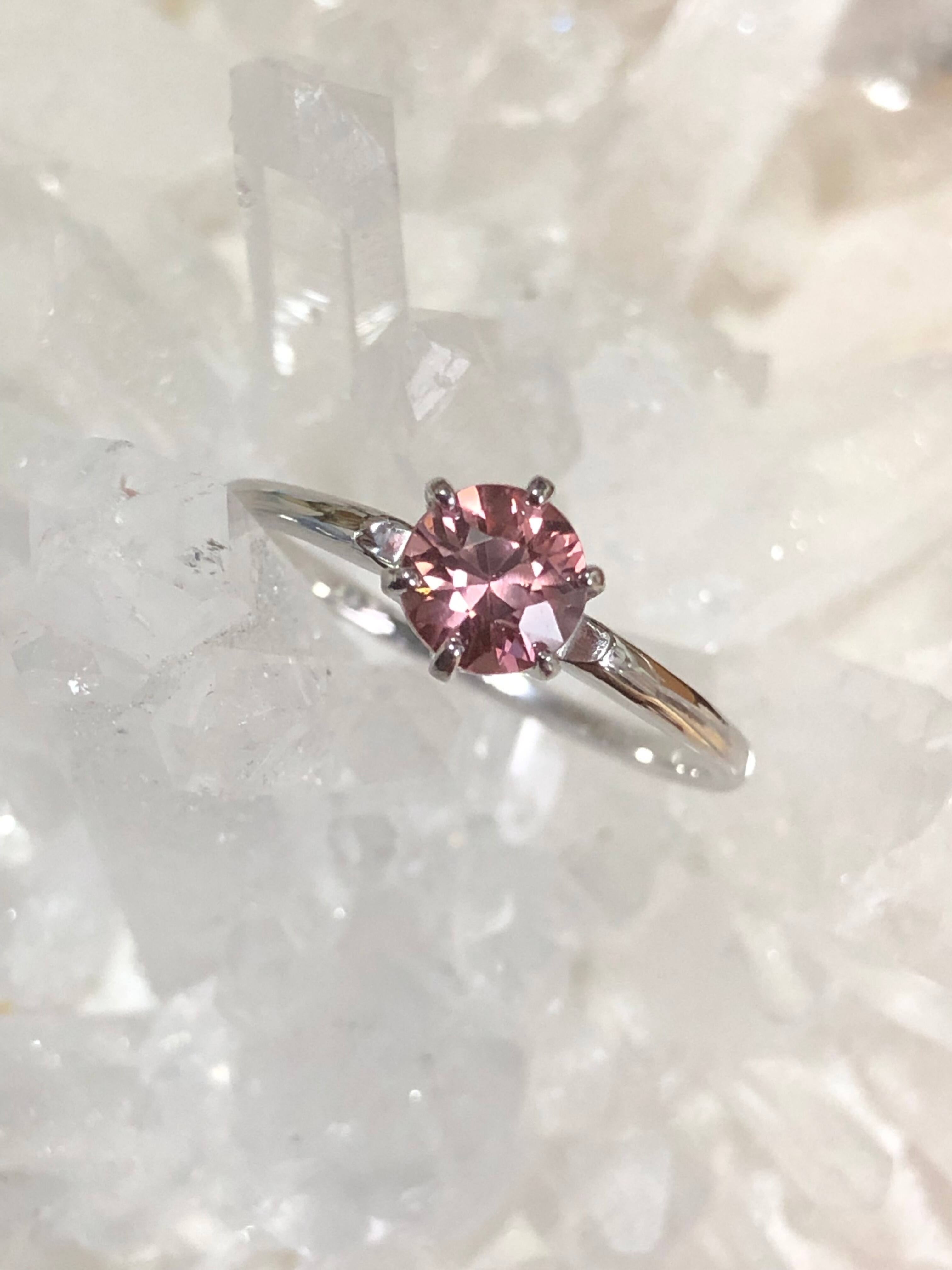 こちらはぐっと優しいお色。少しオレンジが混じるようなパパラチアカラーに近いピンクで