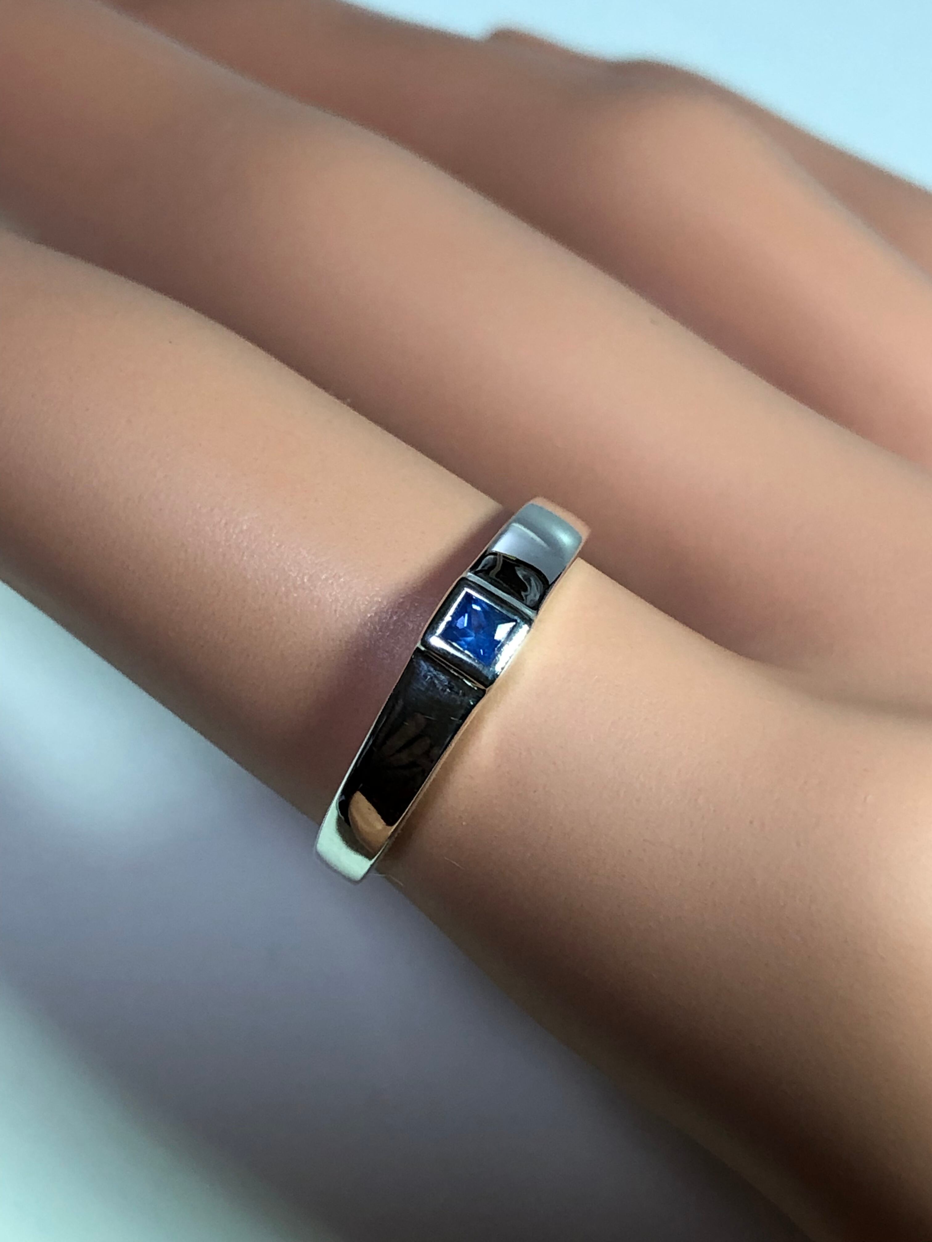 使用したブルーサファイアは高品質のスクエアカット。