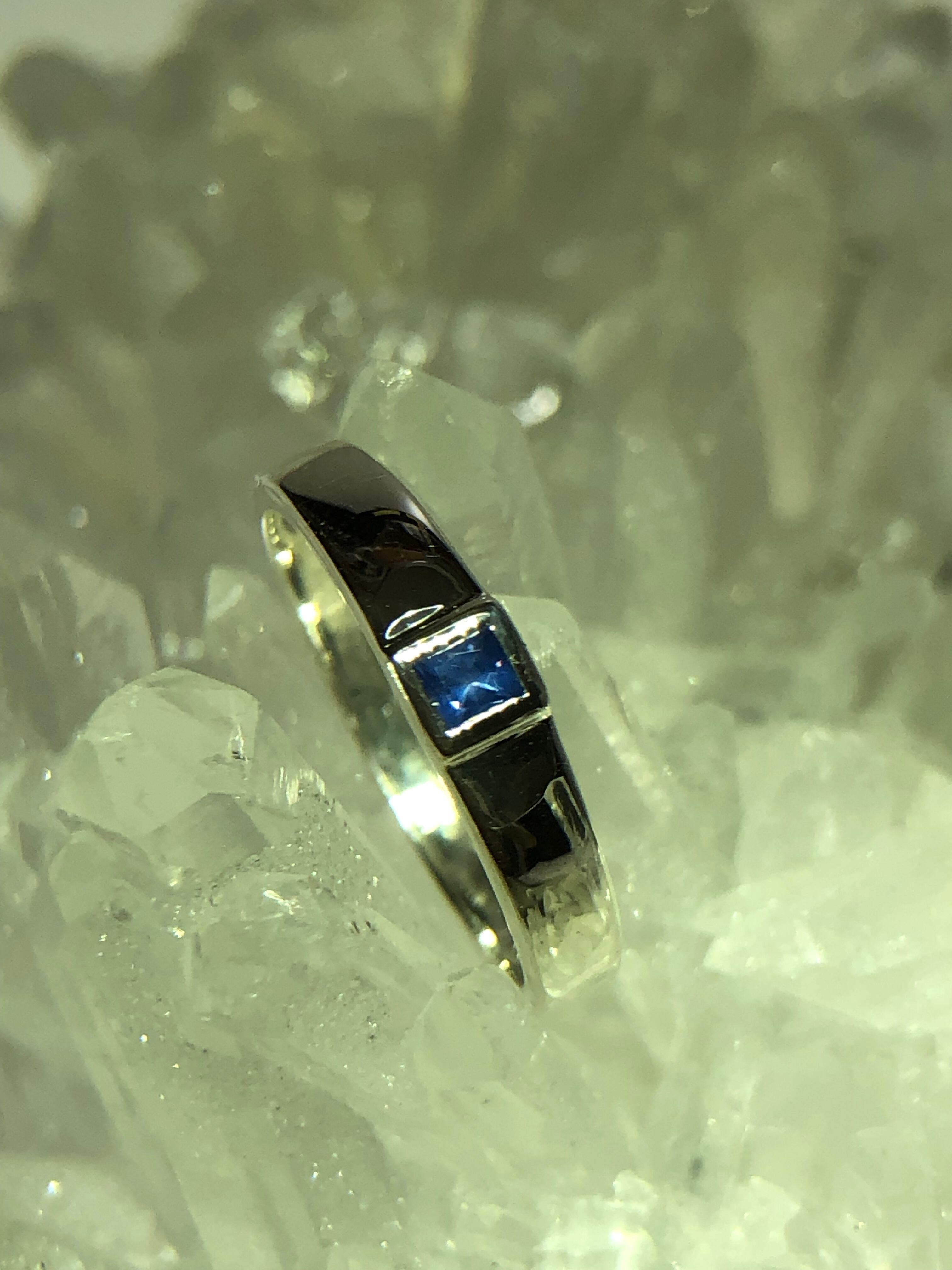 石は小さめですが高品質です。とてもきれいなサファイアブルー。