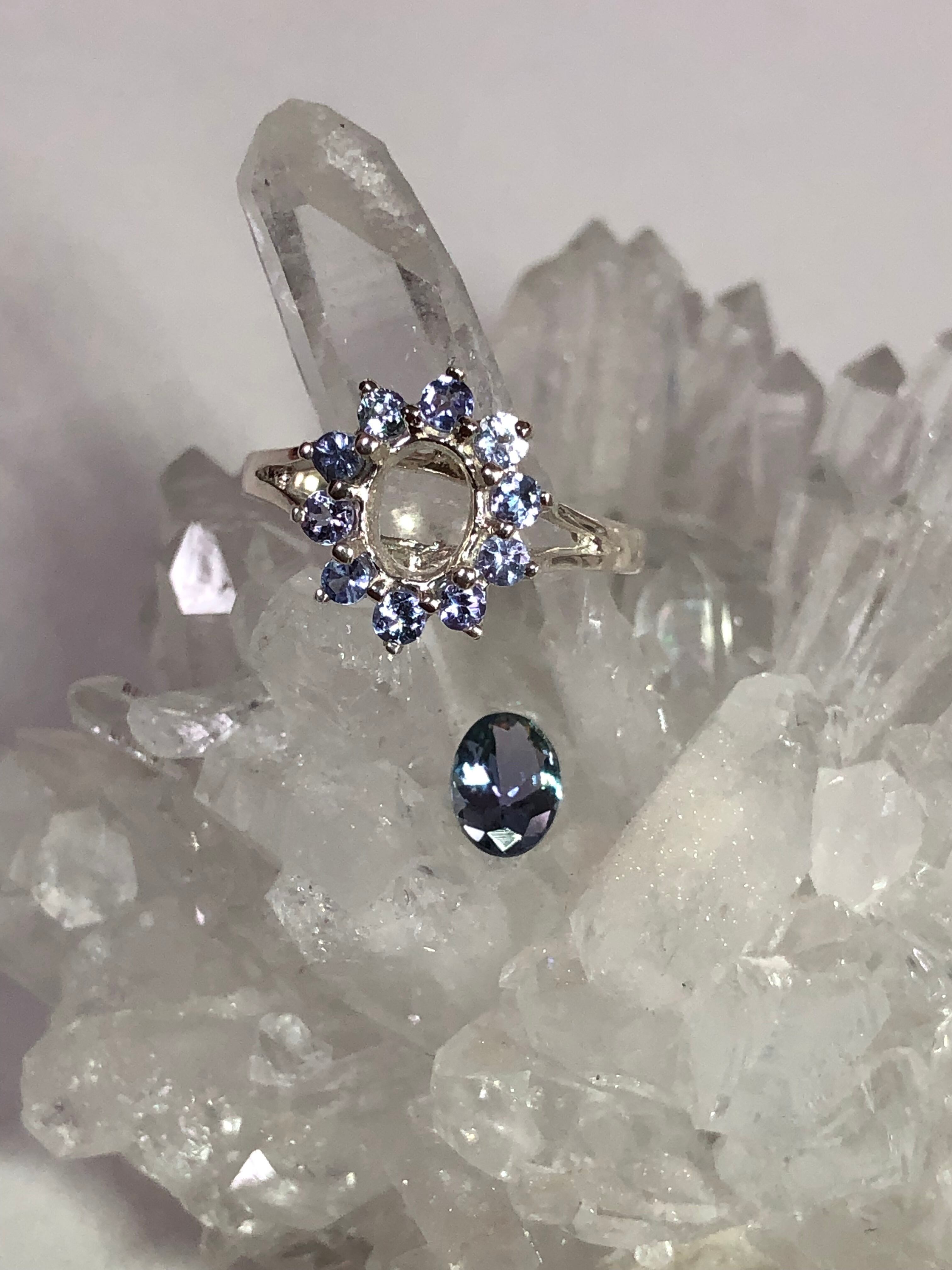 センターの石、正式なカラーはブルーイッシュバイオレット。