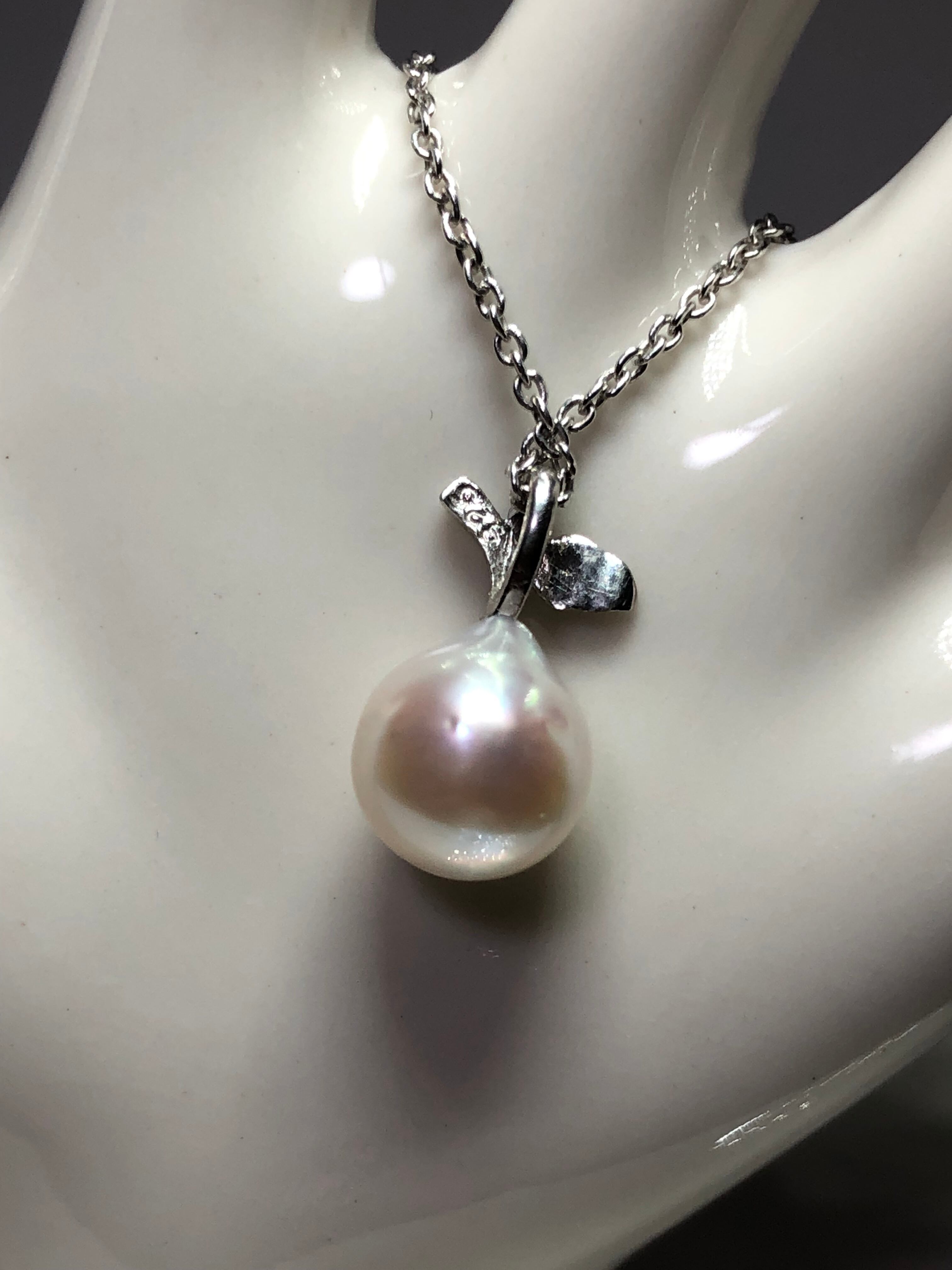 ホワイトピンク系のバロックあこや本真珠で一粒ネックレスを作りました。