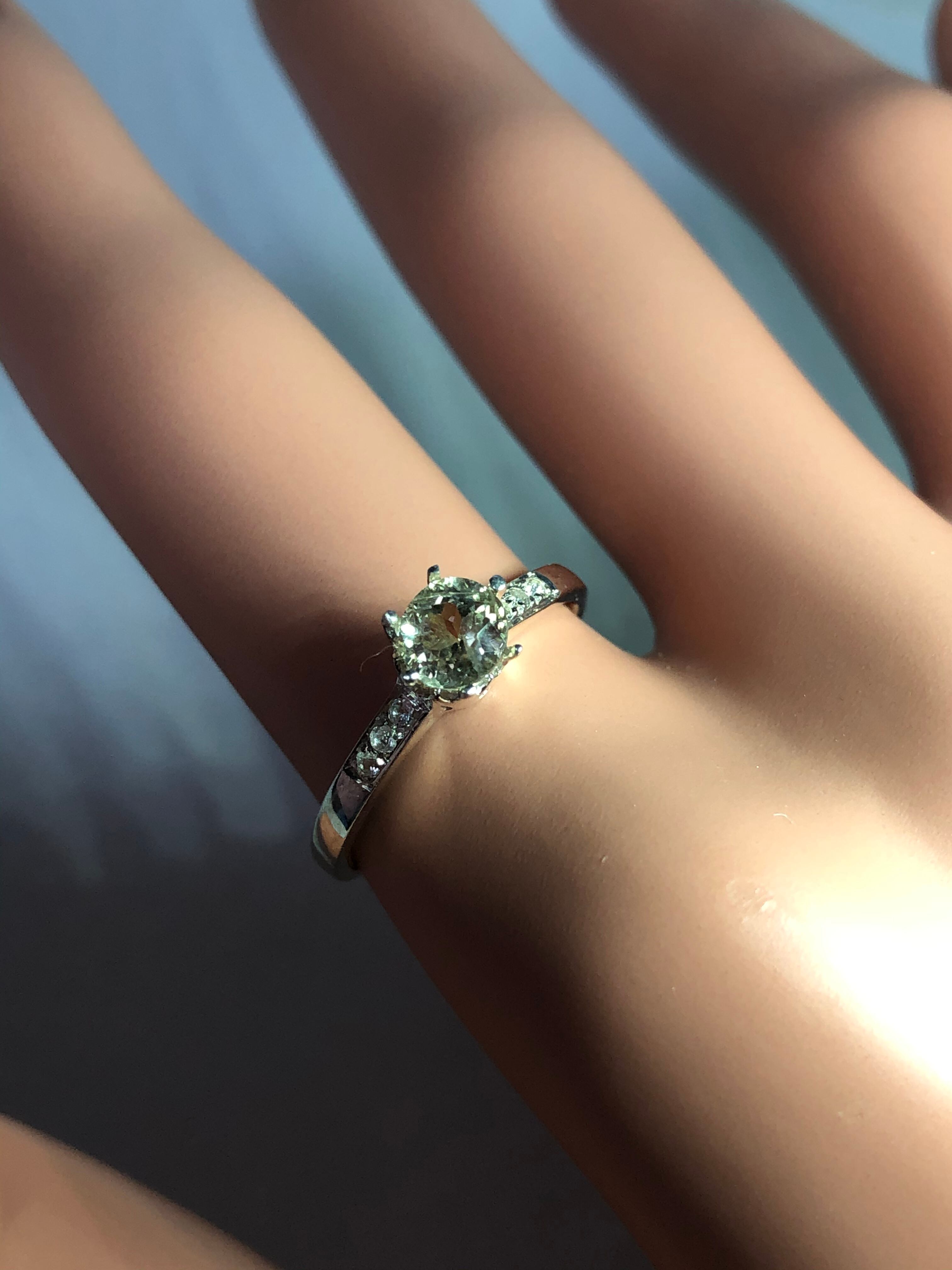 両脇に添えらえたホワイトトパーズが、さり気なく彩を添えております。