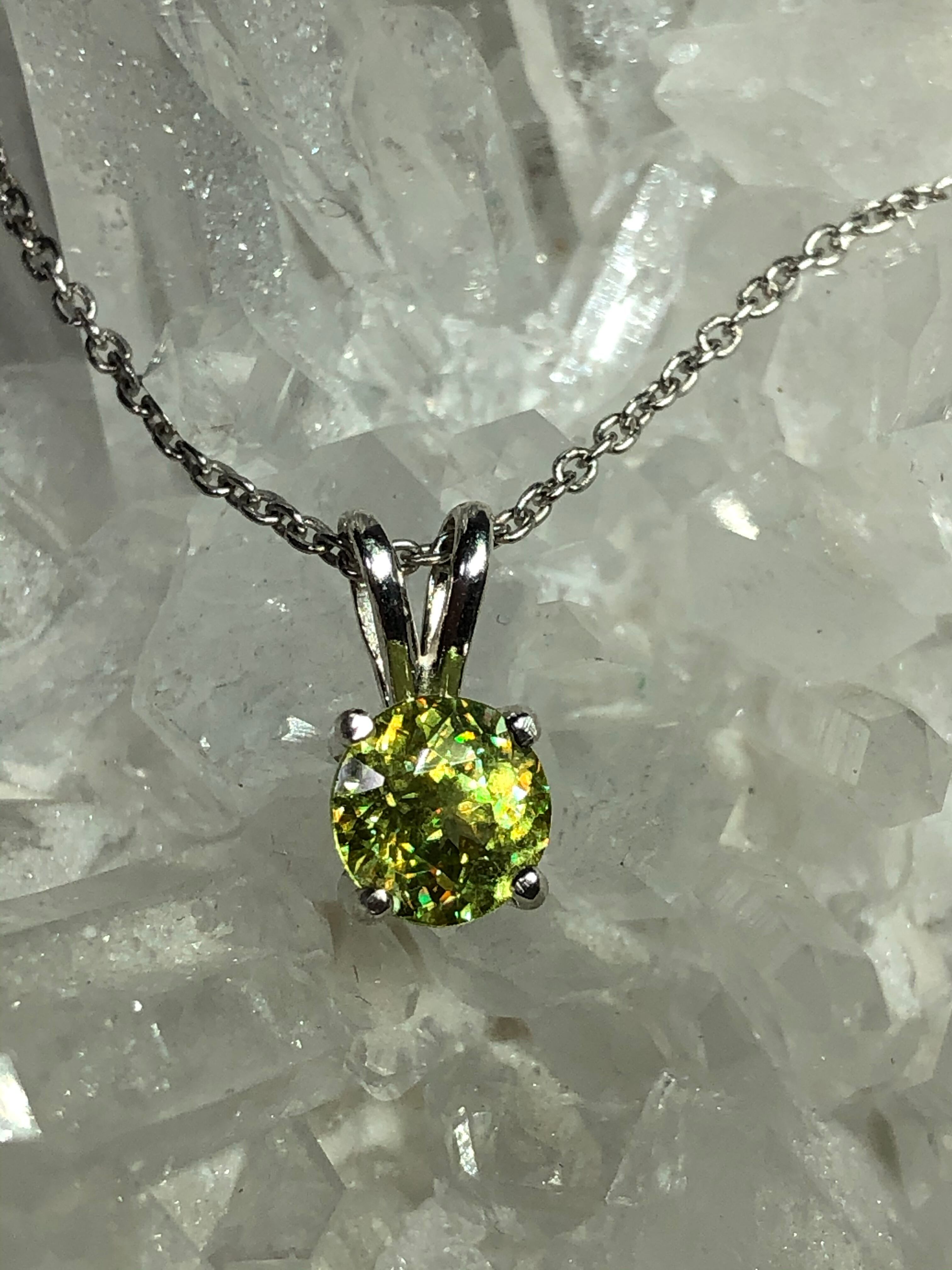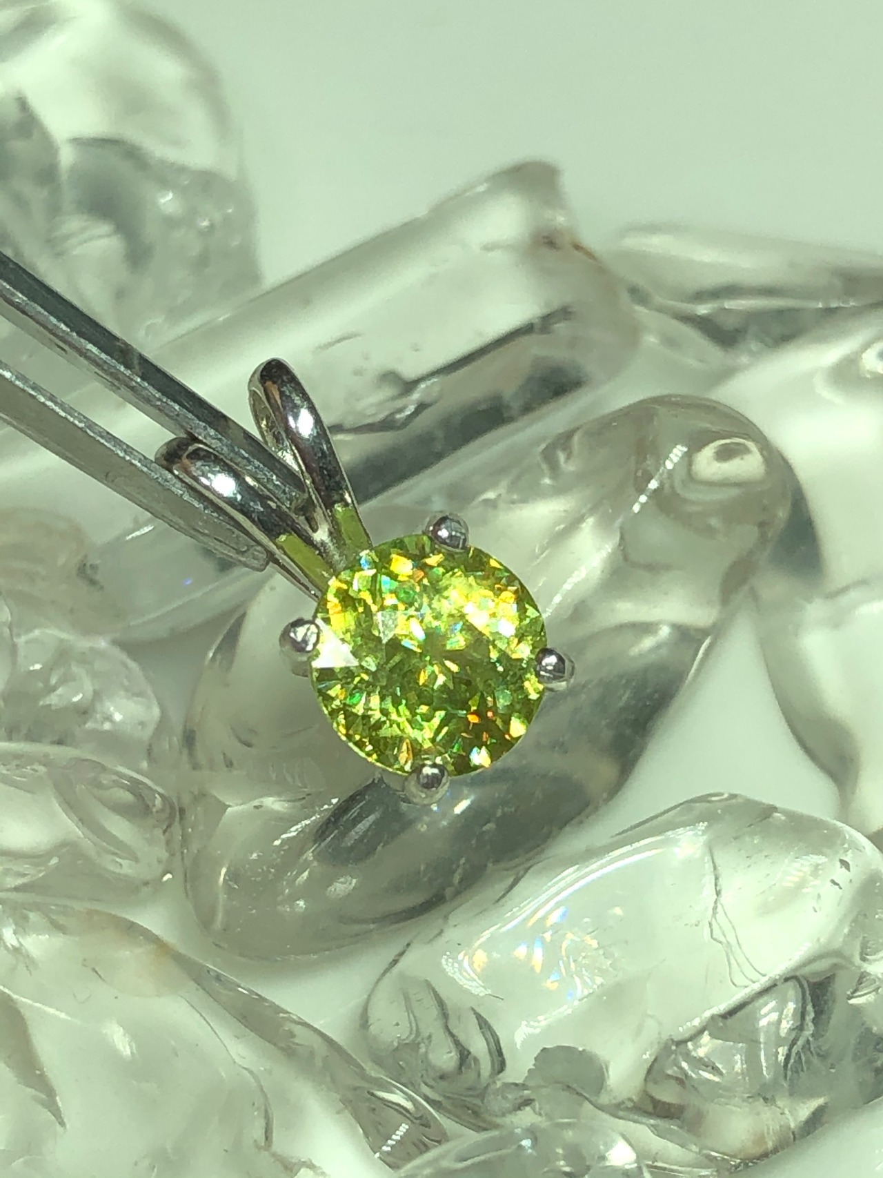 屈折率がとても高く、光の分散はダイヤモンドと同等かそれ以上のスフェーンはとにかく光ります。