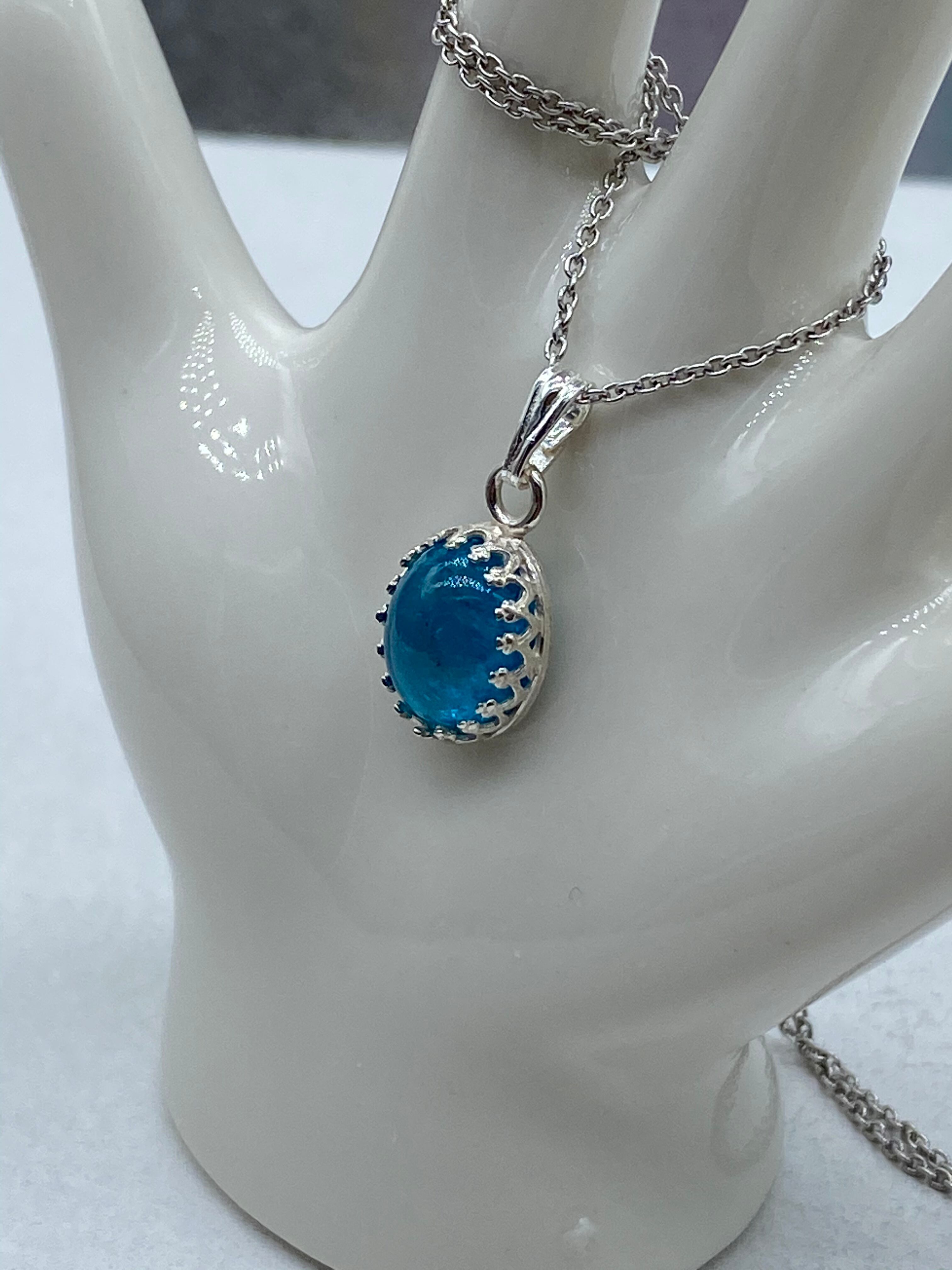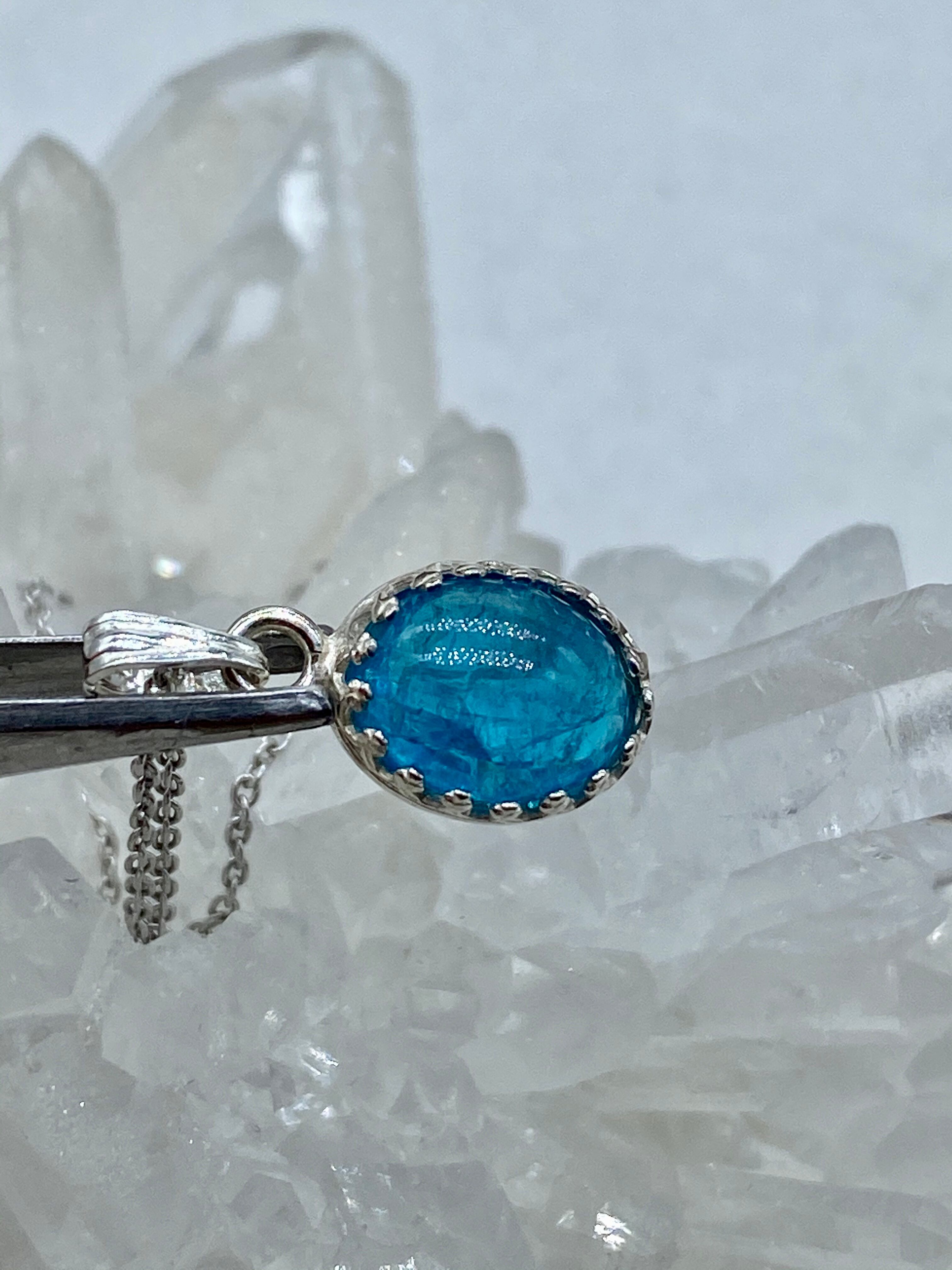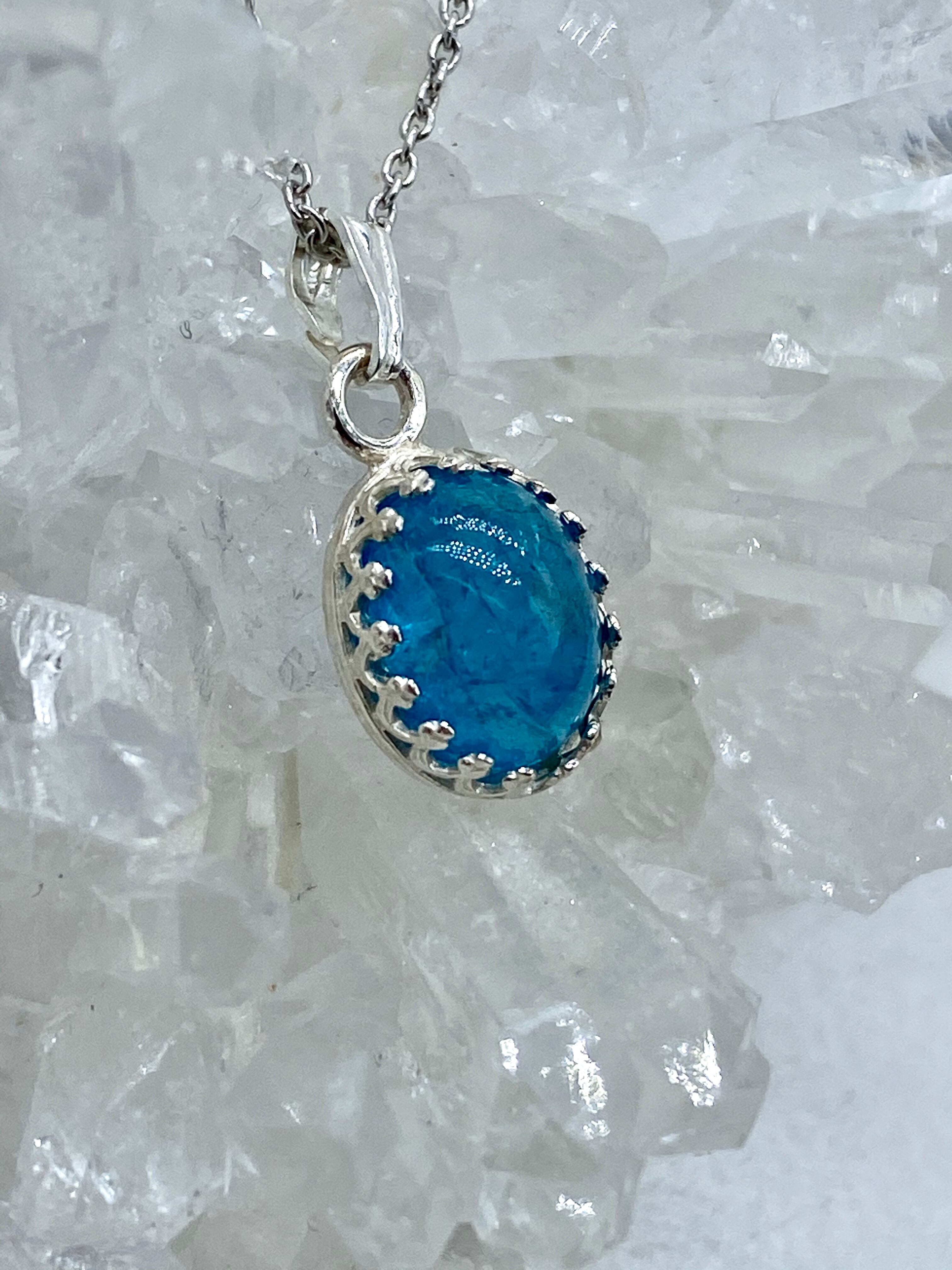 ネオンブルーアパタイト(カボション)のネックレス