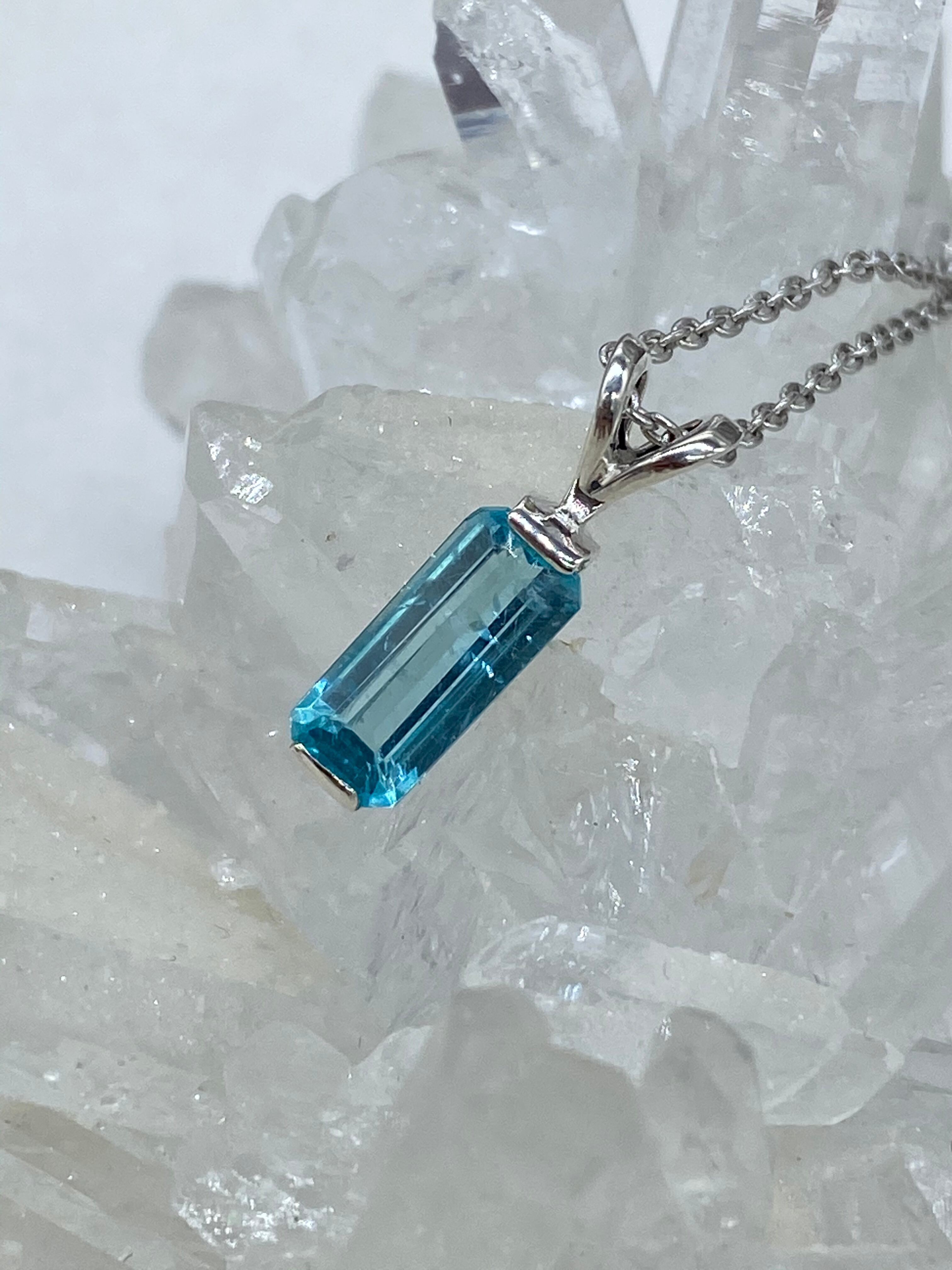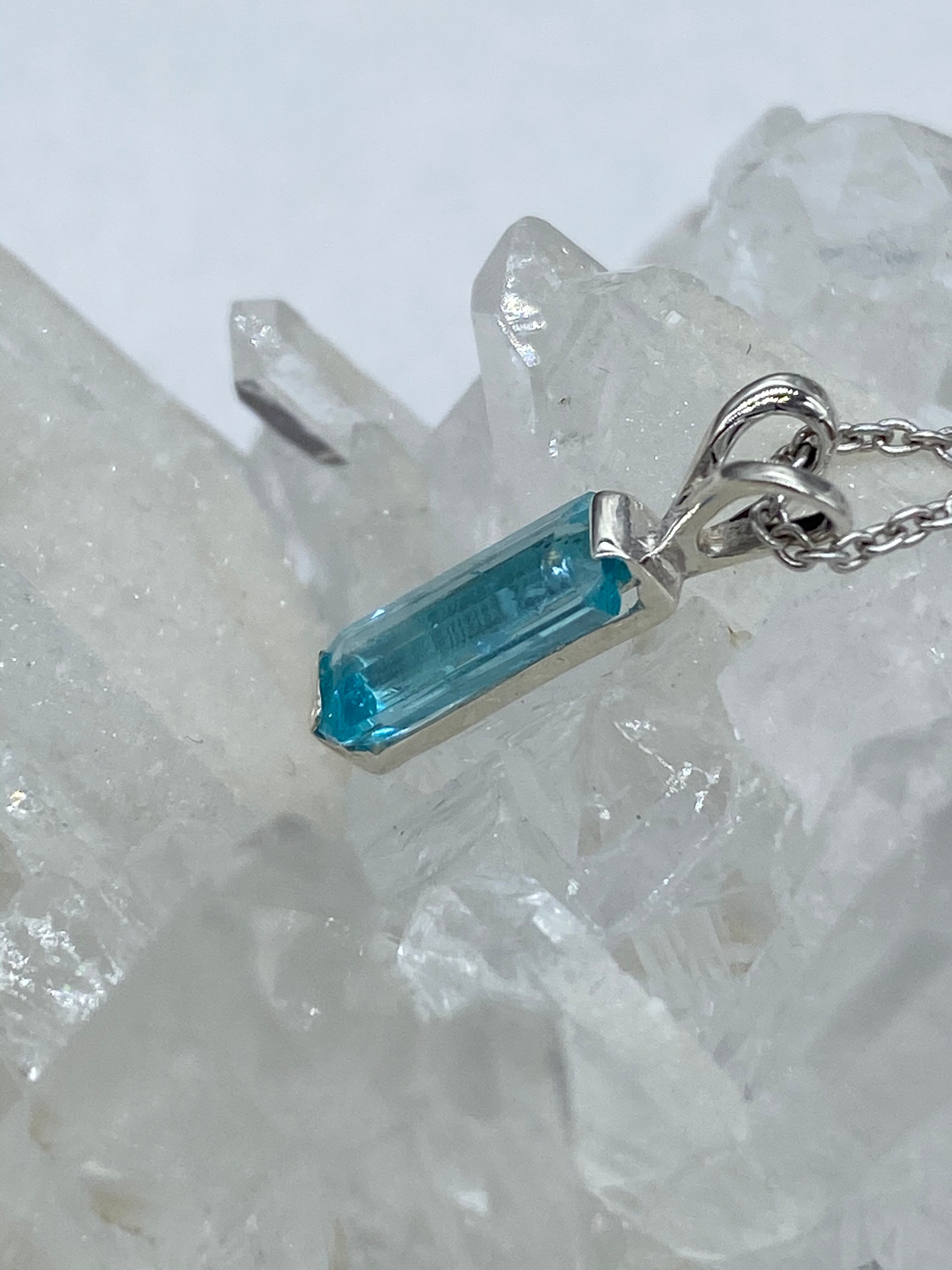 ライトスカイブルーのアパタイト(エメカット)のネックレス