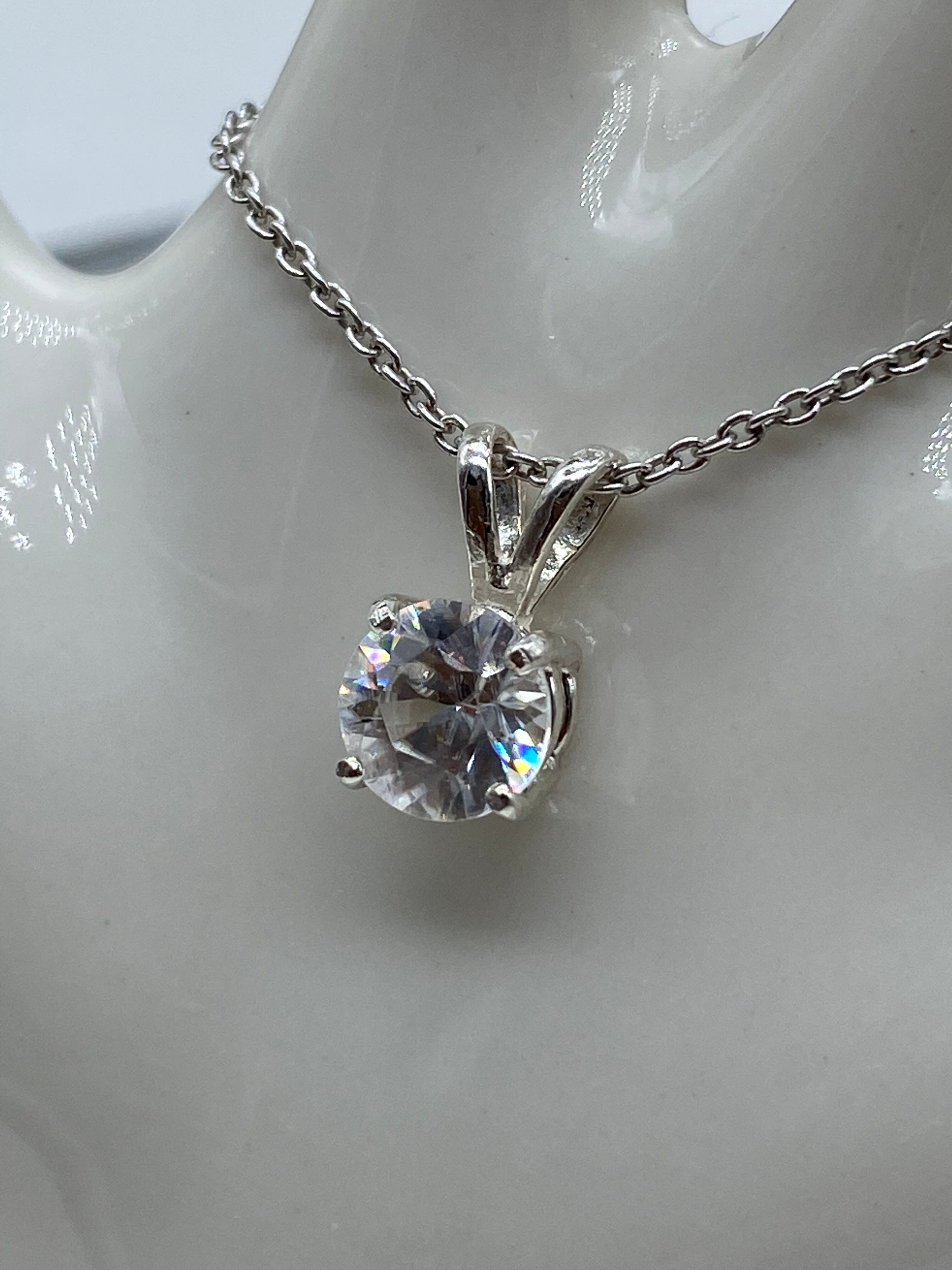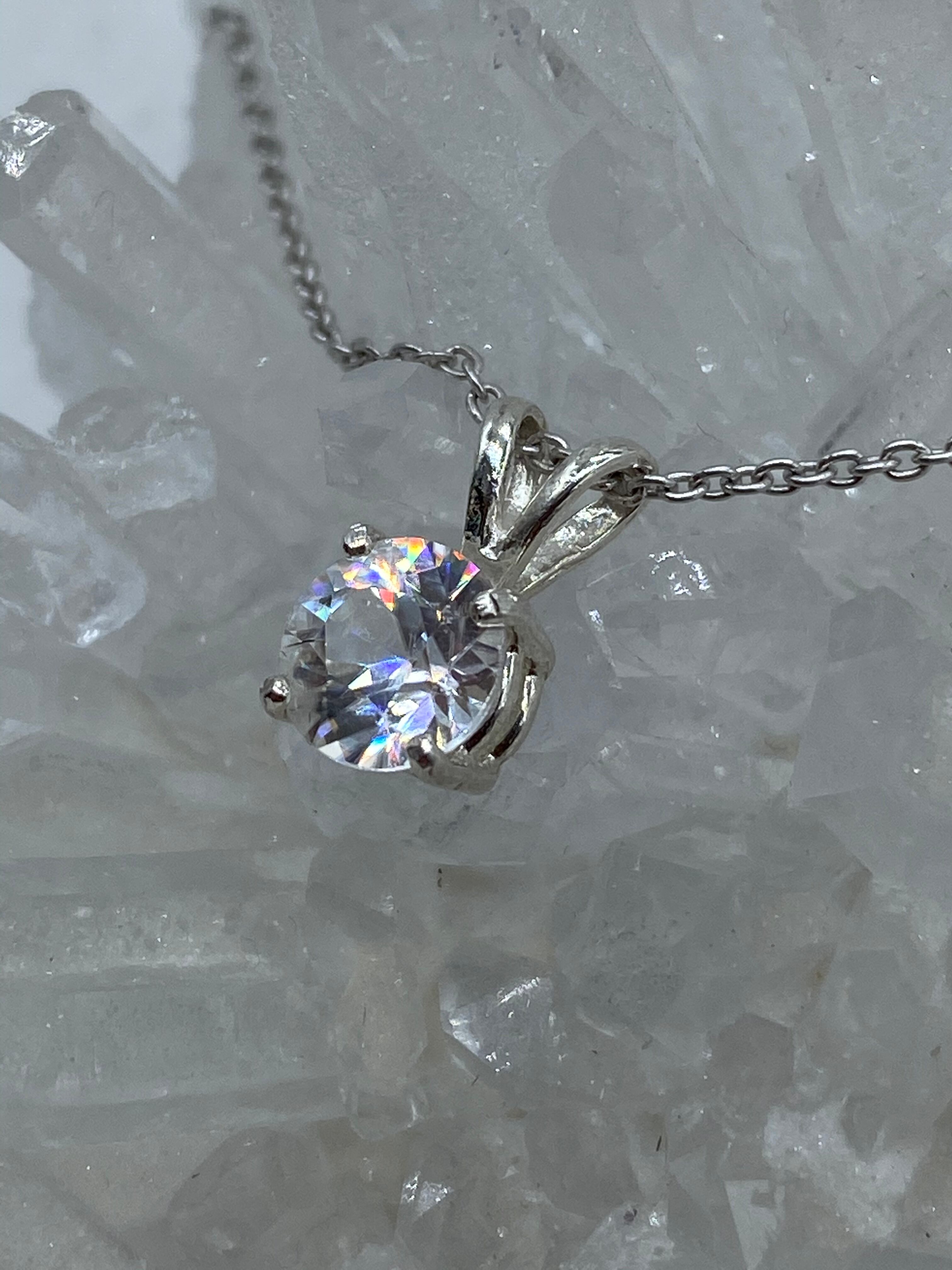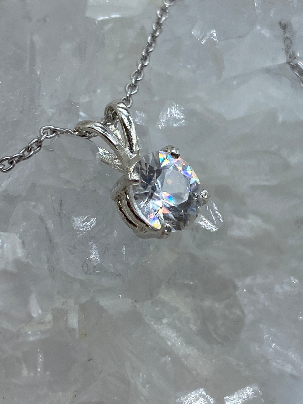 ホワイトジルコン(天然石)のシンプルネックレス B