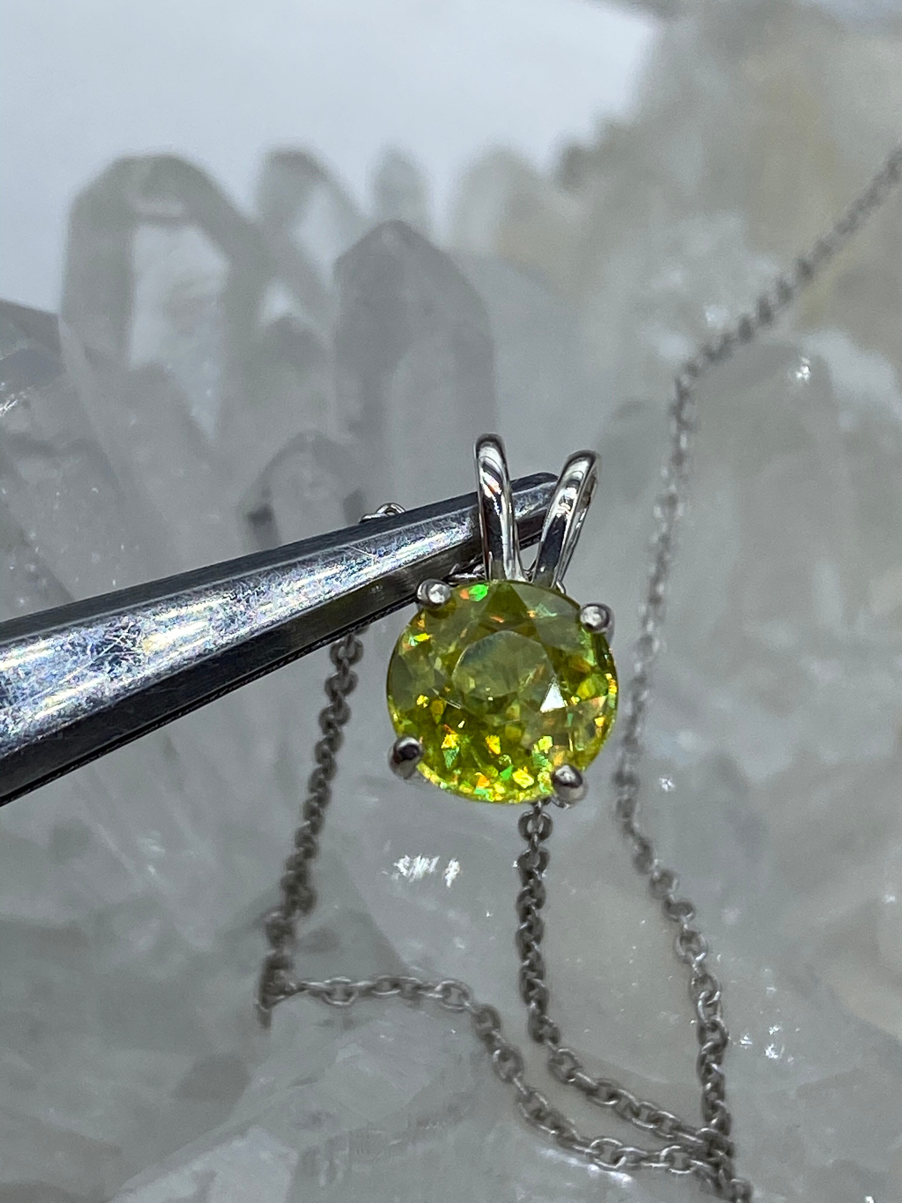 大粒1.5ct スフェーンのシンプルネックレス~グリーン系