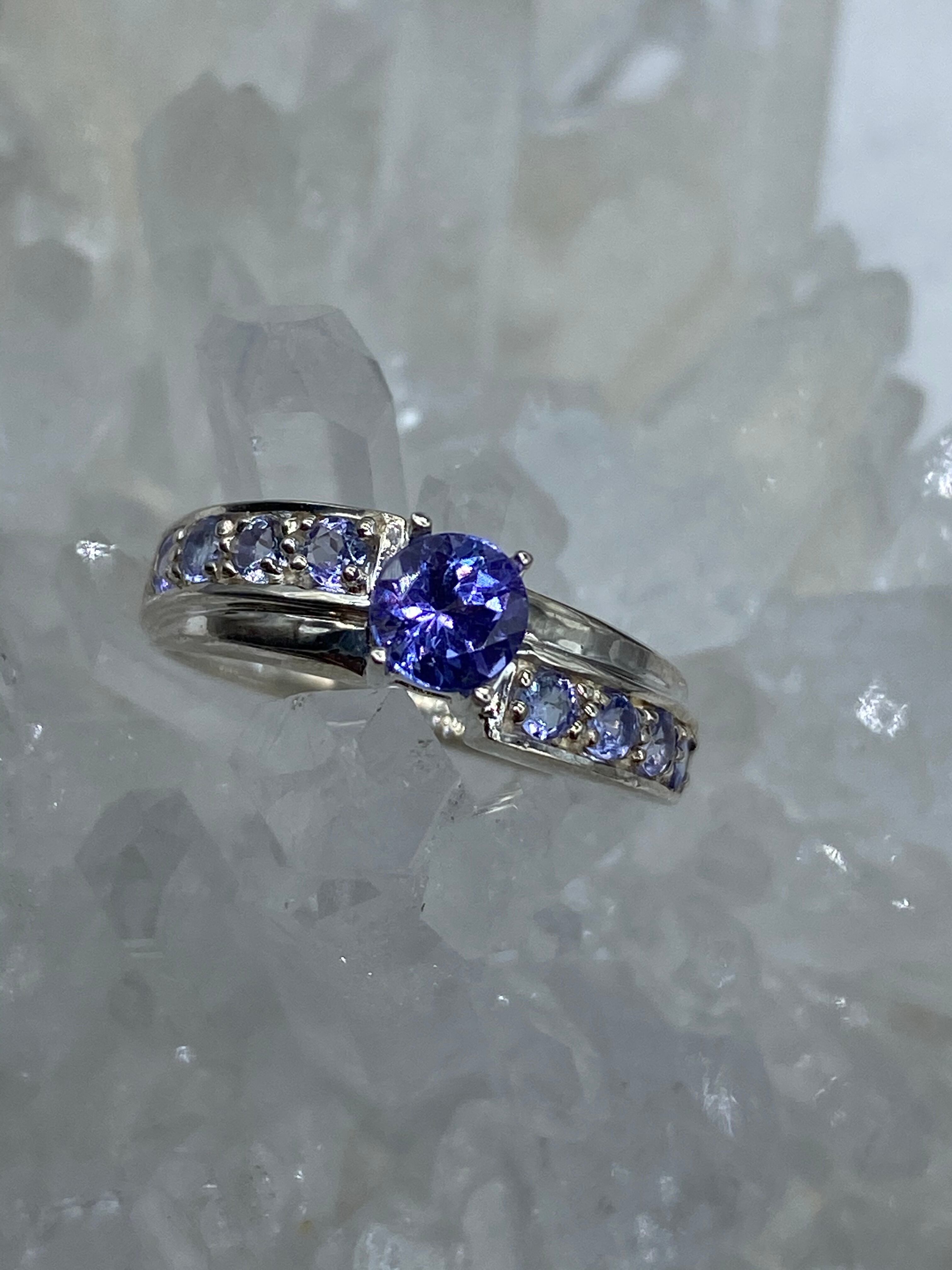 8粒のメレタンザはパープルからライトパープル主体の透明度の高い石。