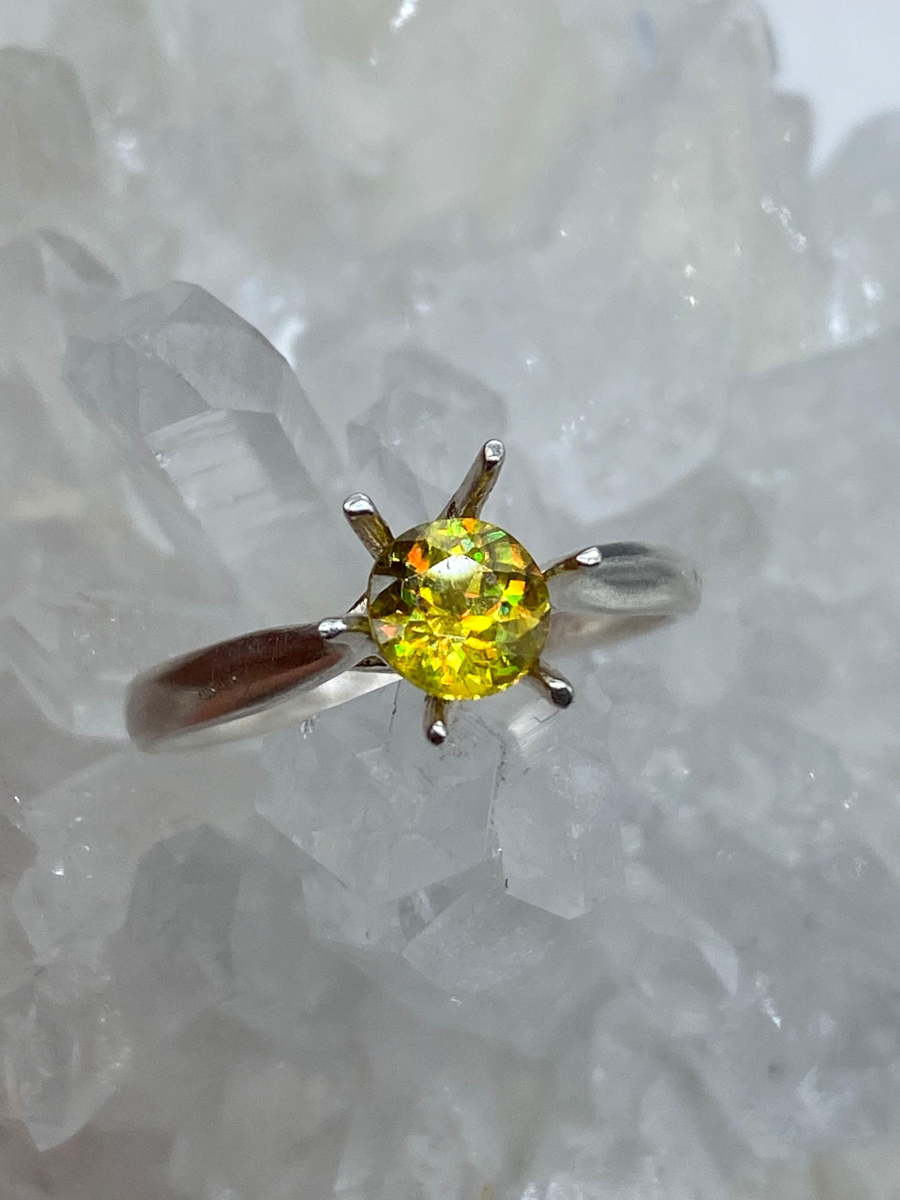ぎらぎらに光ります。スフェーンには大きく分けてグリーン系 ブラウン系 イエロー系があります。