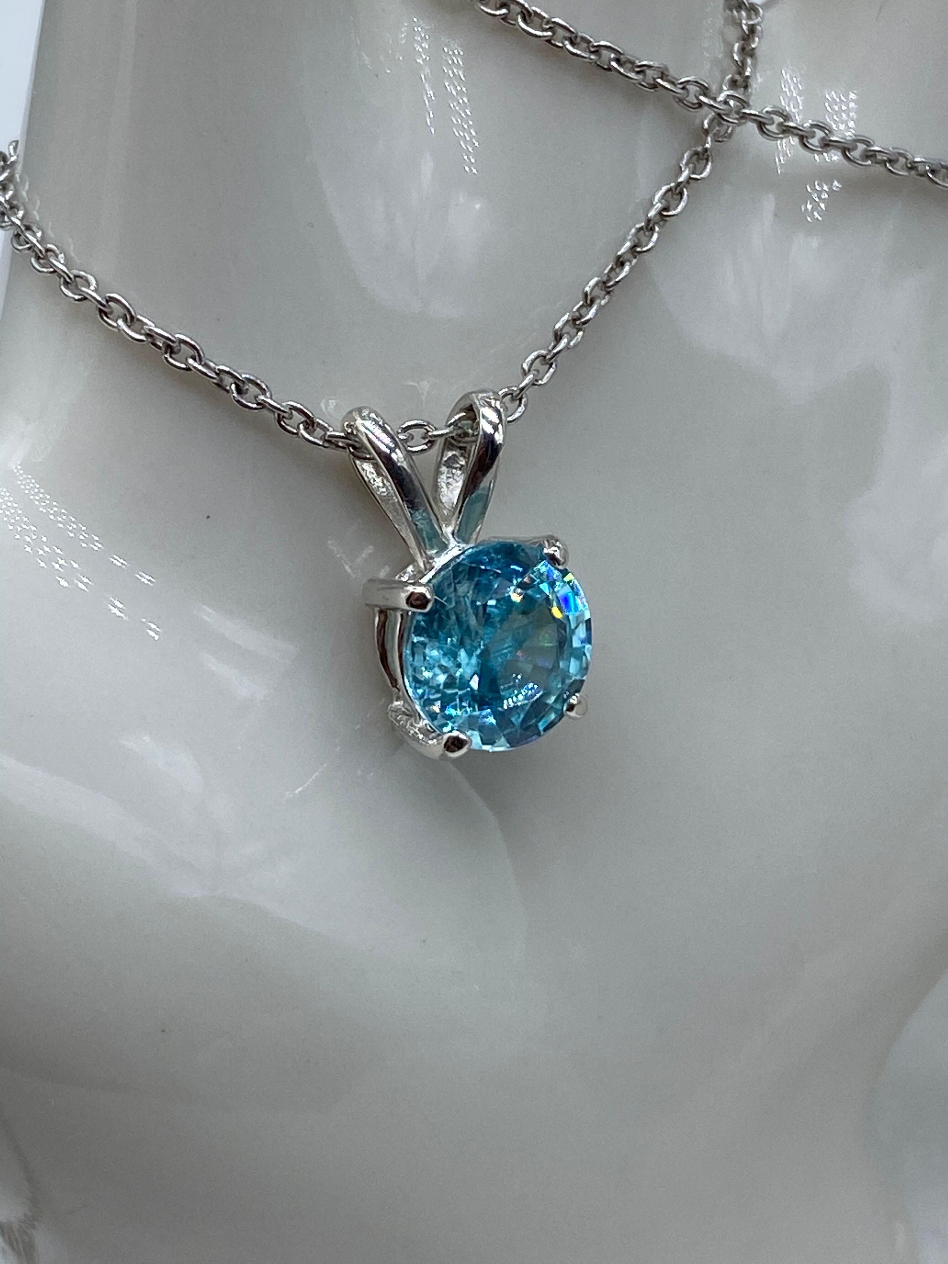 BIGサイズ!ブルージルコンA(天然石)のシンプルネックレス