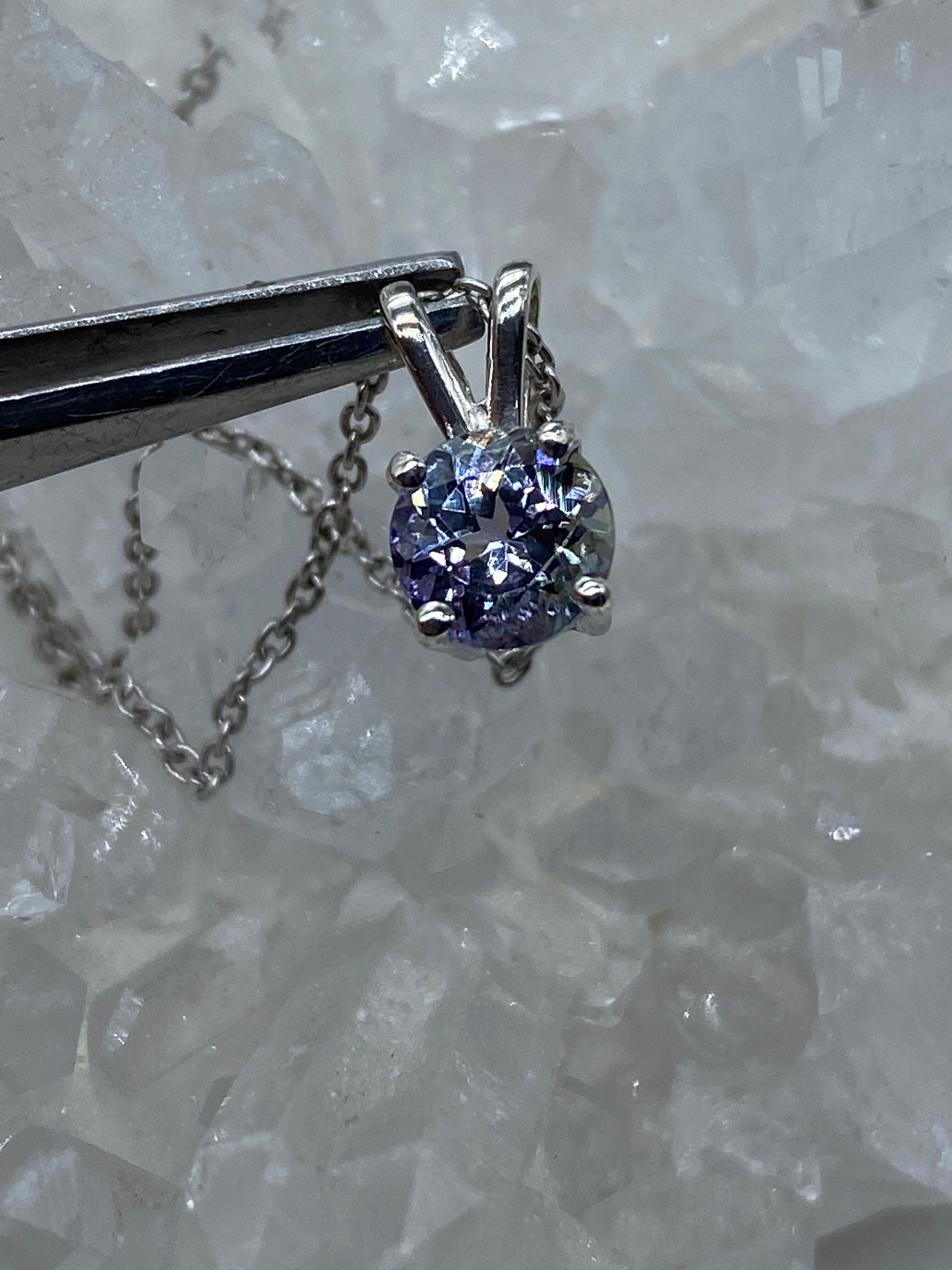 こちら、涼しげなブルーをかんだグリーンとバイオレットが同じくらい主張する石。