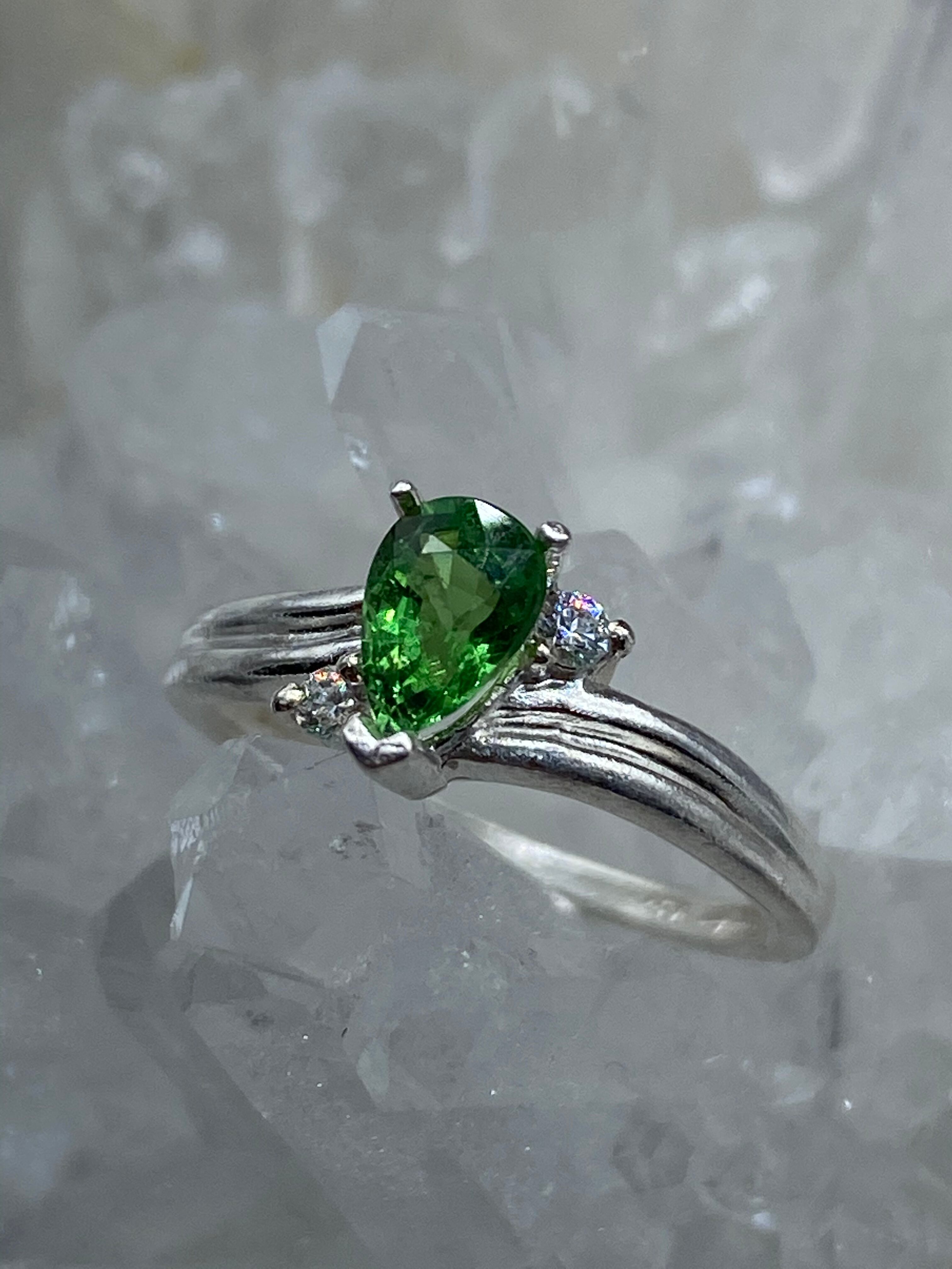 メイン石のツァボライト(グリーンガーネット)は6×4のペアカット。