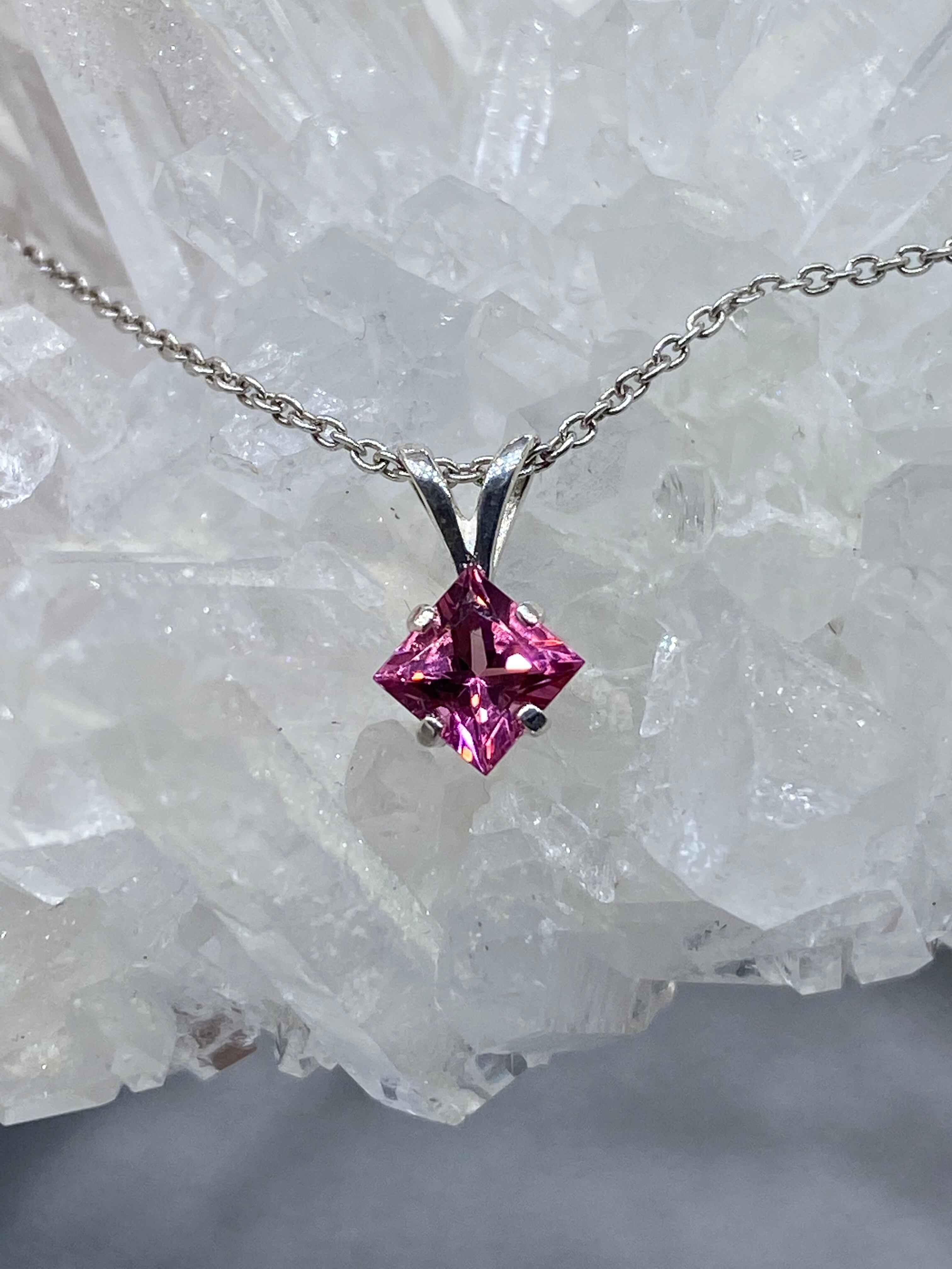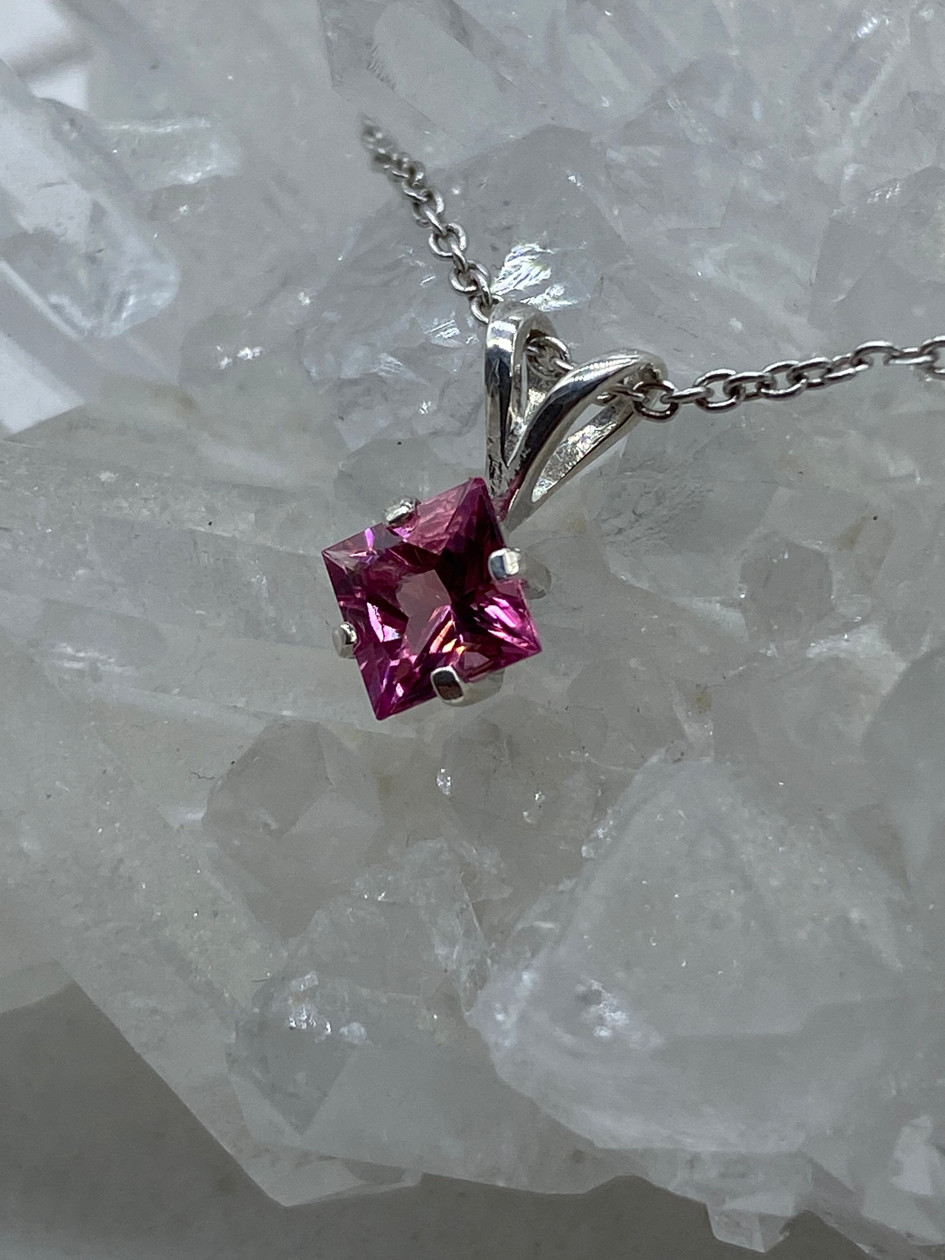 使用したピンクトルマリンは5㎜のスクエアカット。