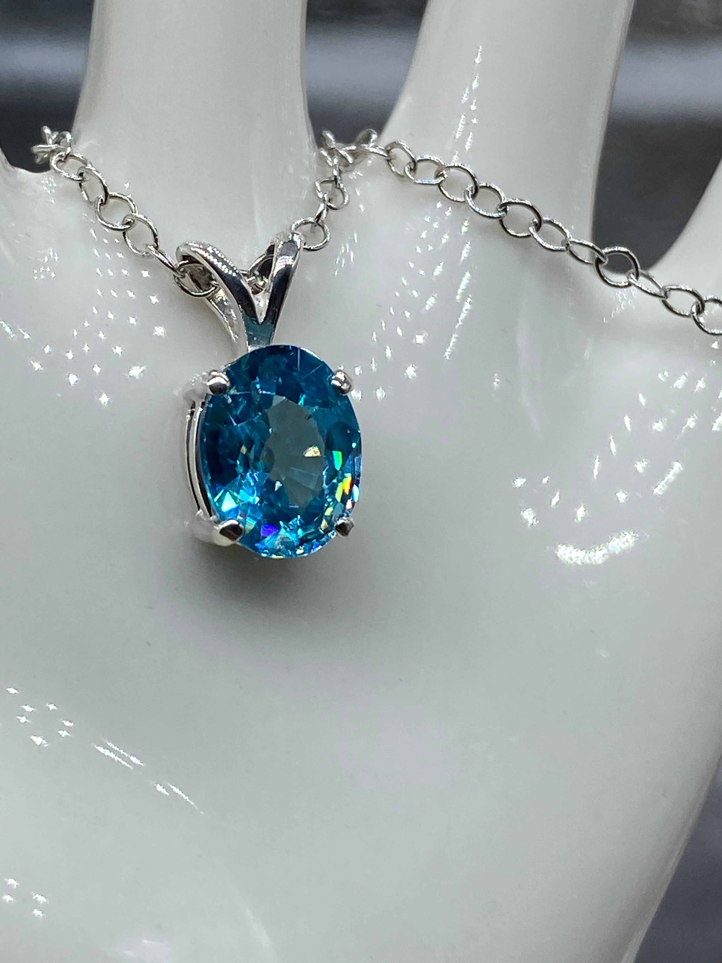 使用したジルコンは高品質の9×7オーバルの濃いブルーのジルコンです。