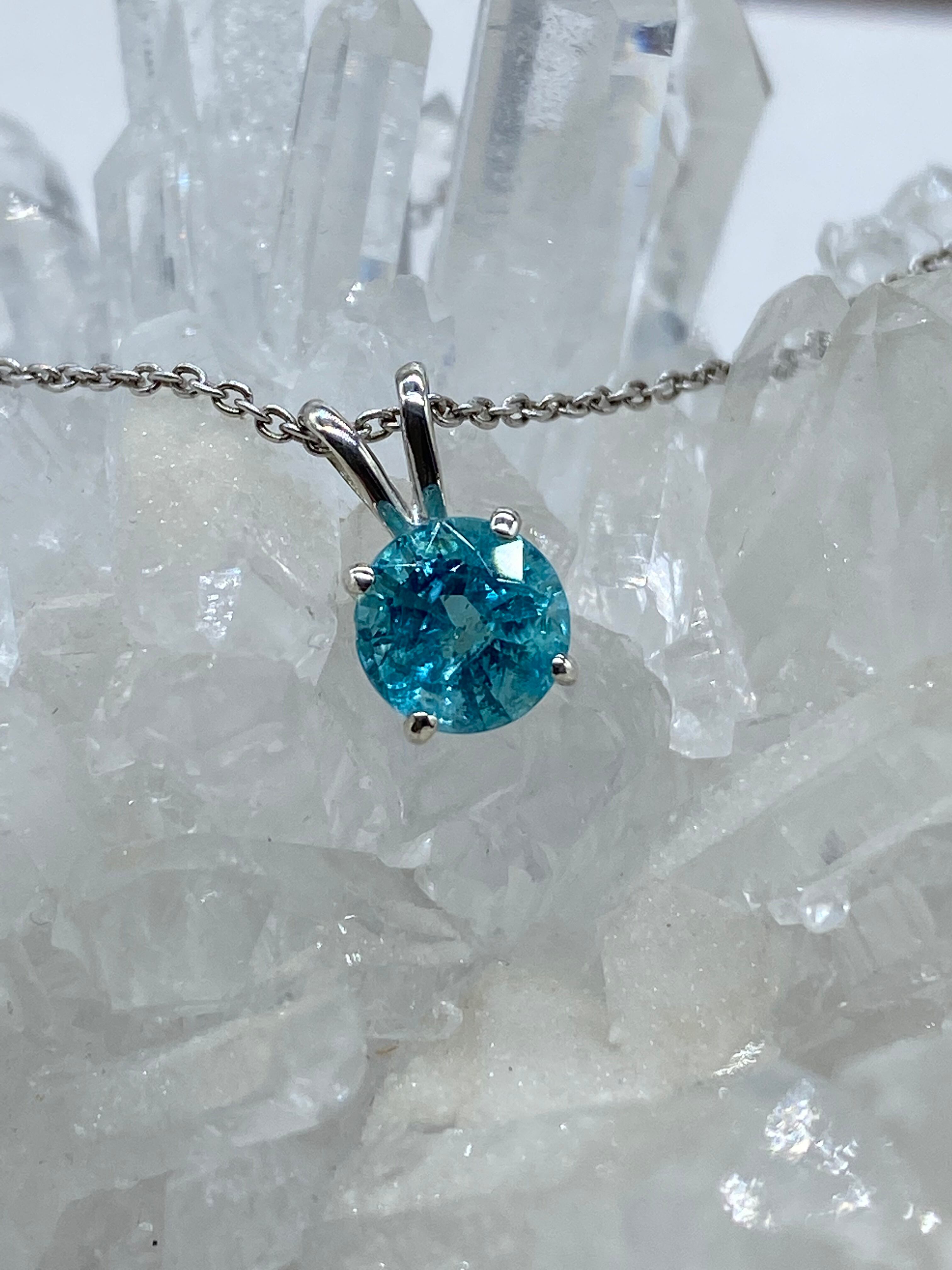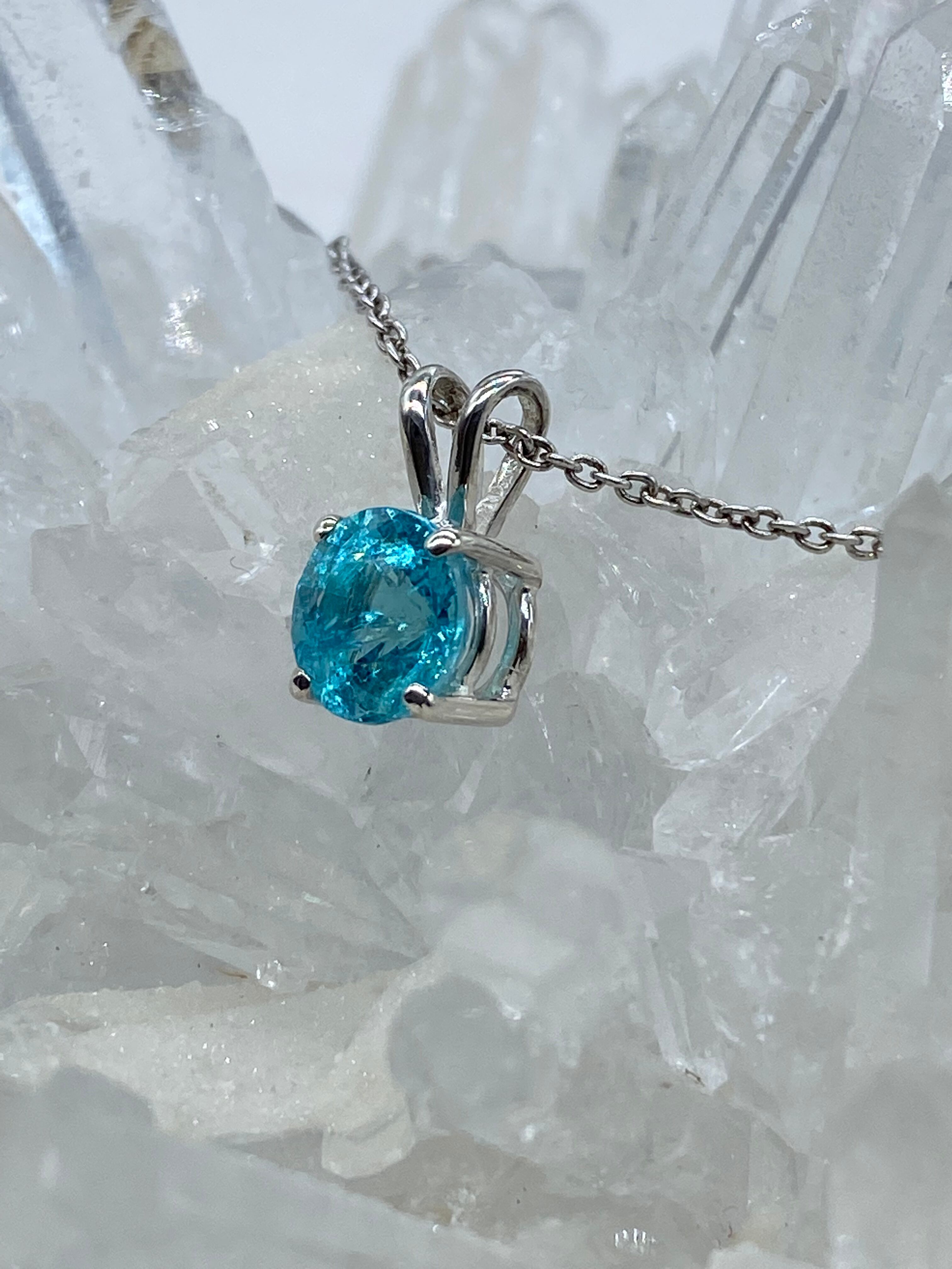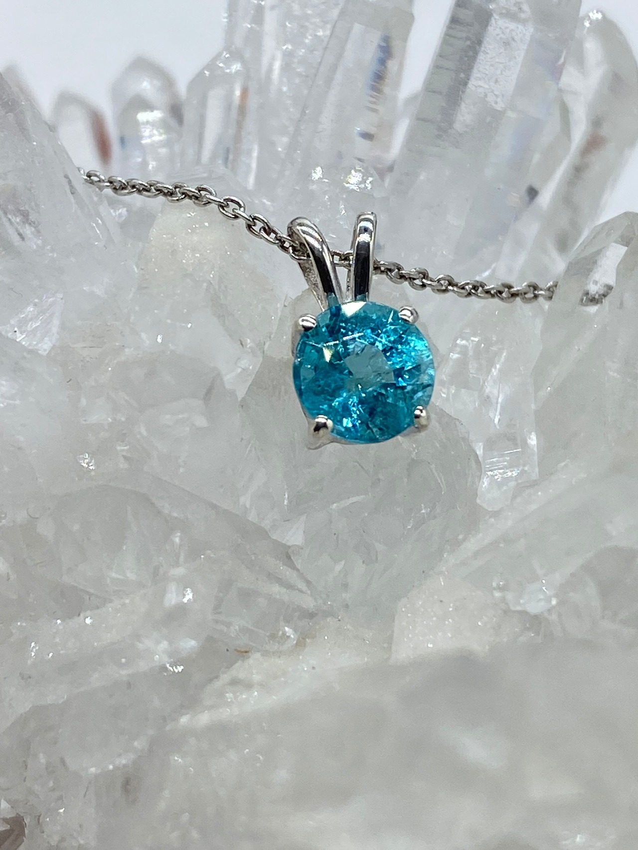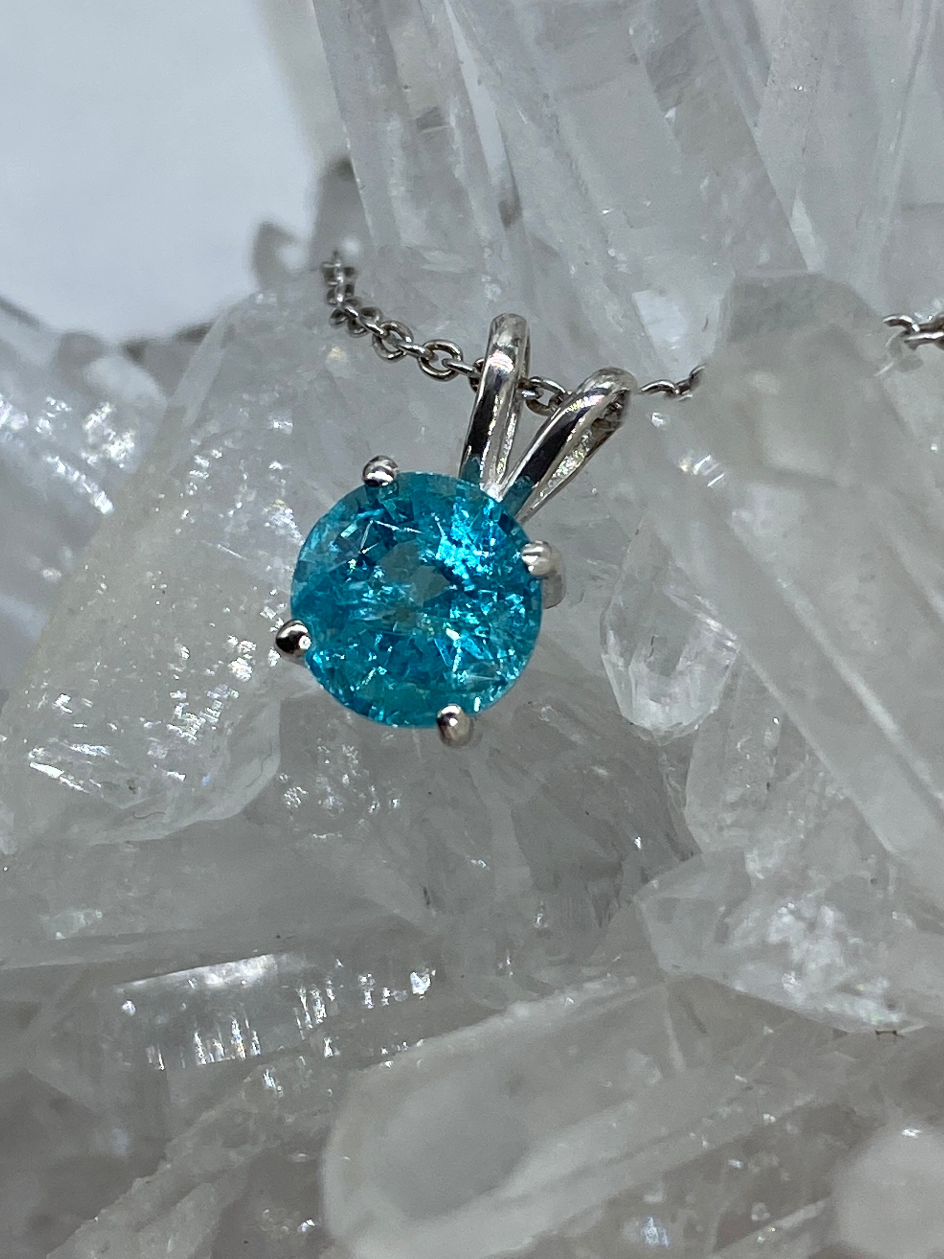 使用したアパタイトは7㎜ラウンドカット。こちら、購入時のお色はパライバブルー。
