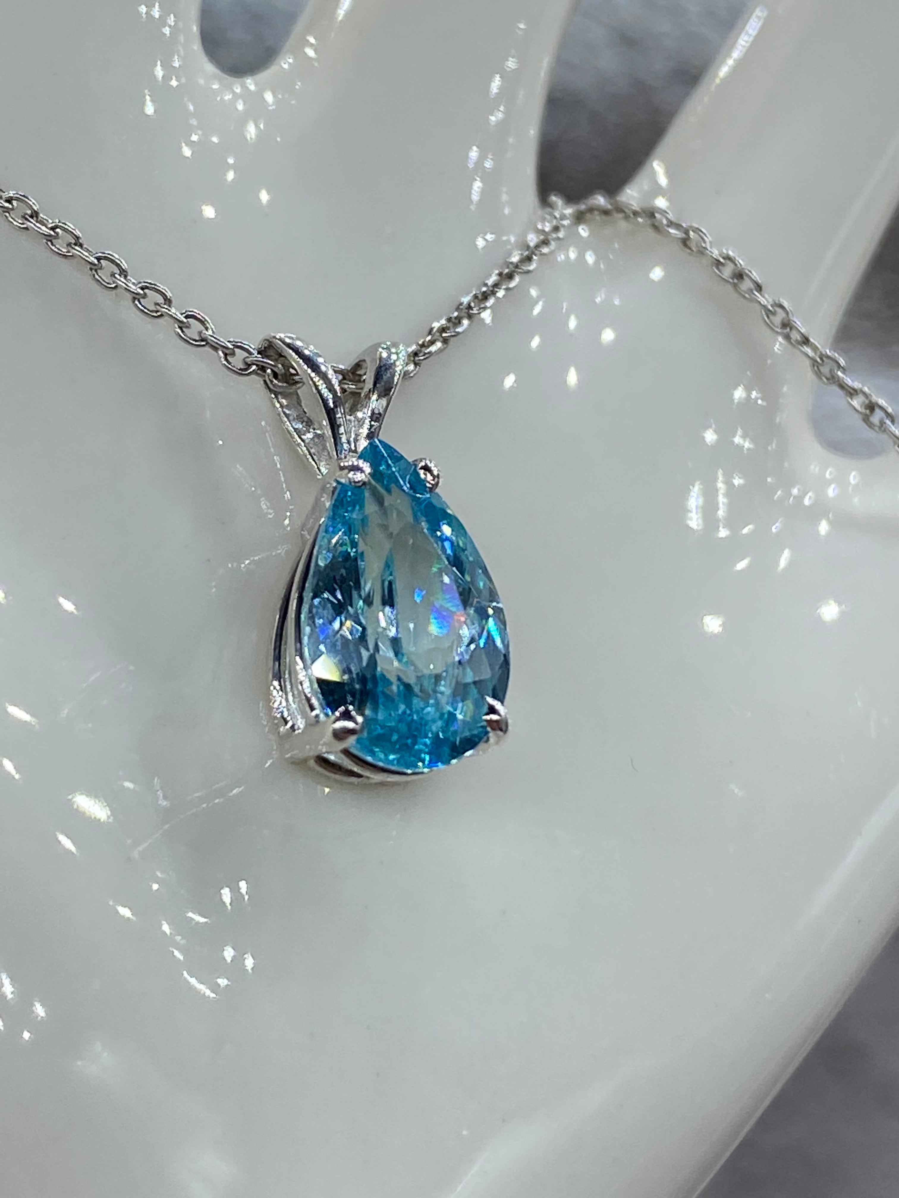 大粒°˖✧◝(⁰▿⁰)◜✧˖°天然ブルージルコンA(ペア 3.20ct )のネックレス