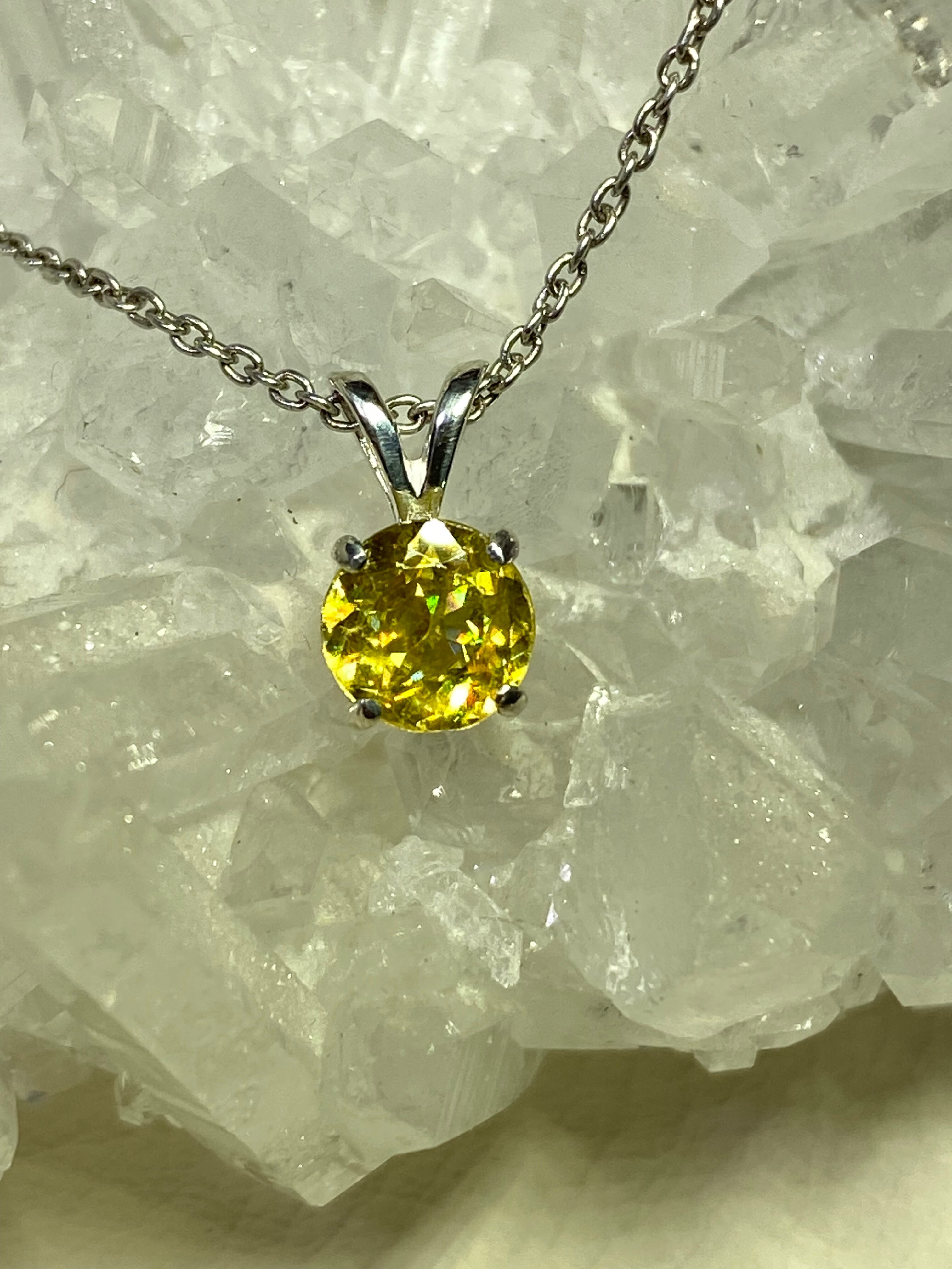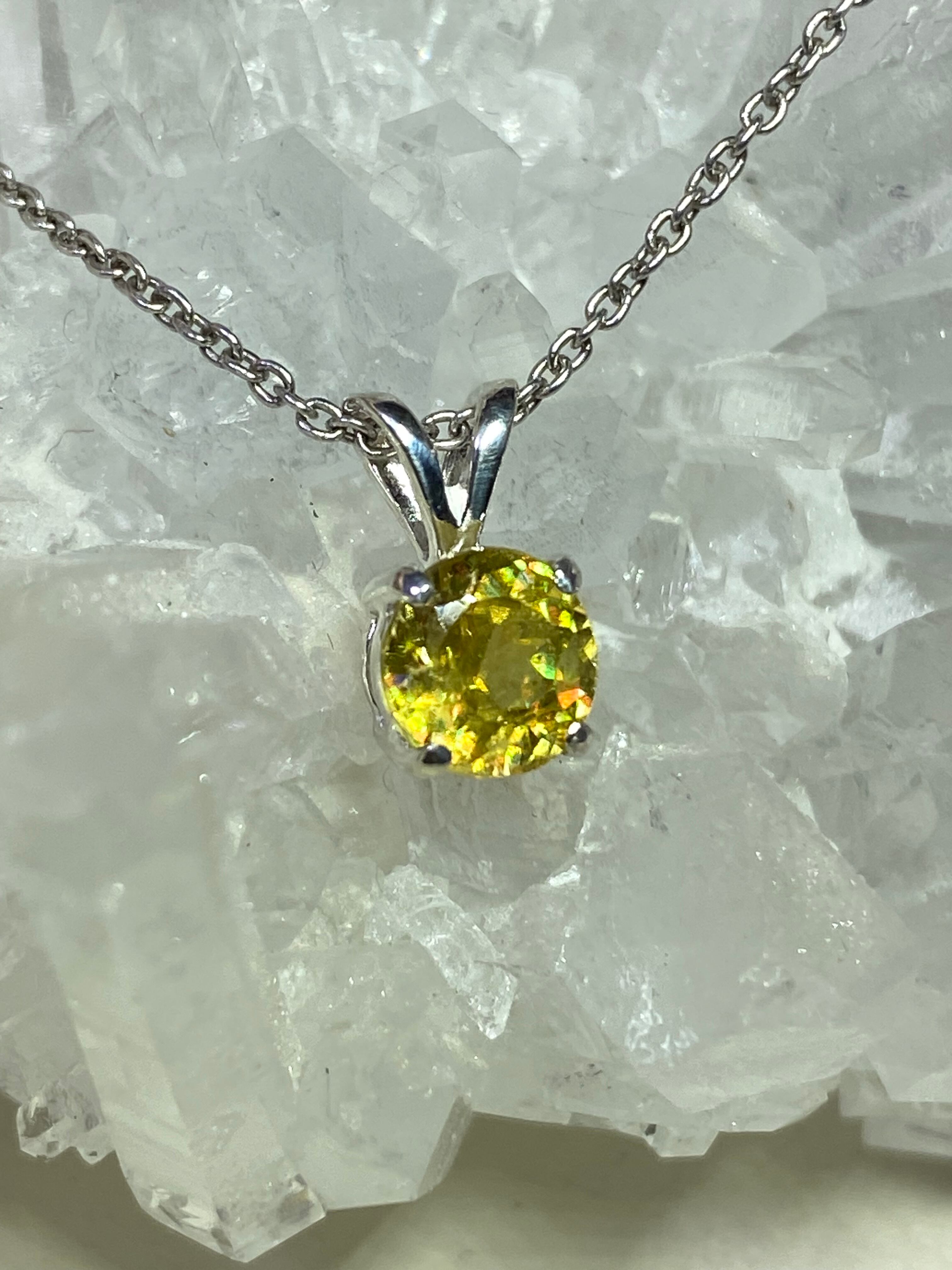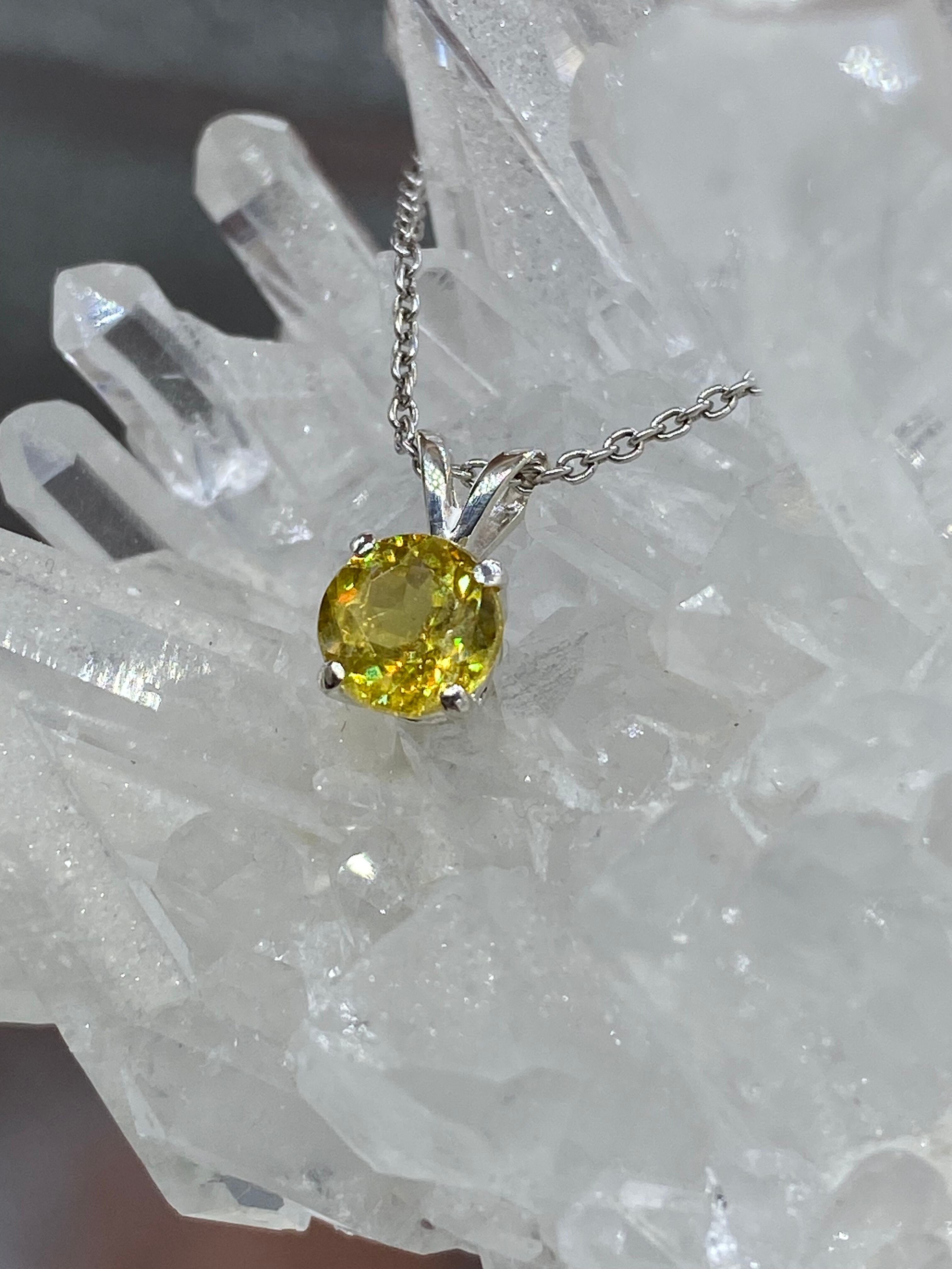 屈折率がとても高く、光の分散はダイヤモンドと同等かそれ以上のスフェーンはとにかく光ります。