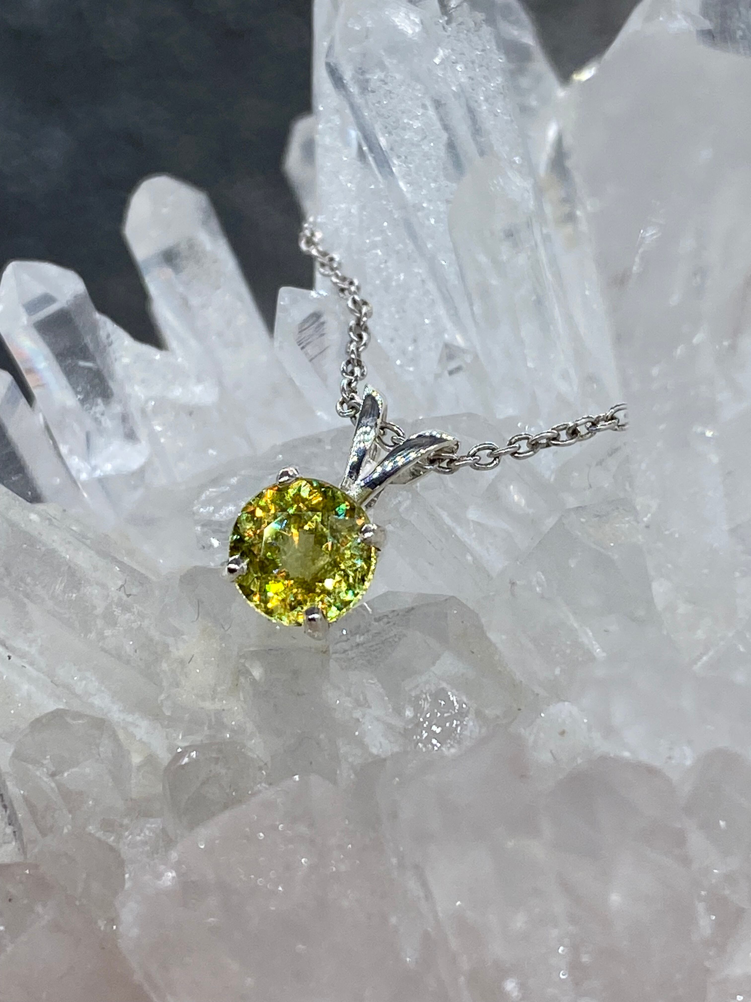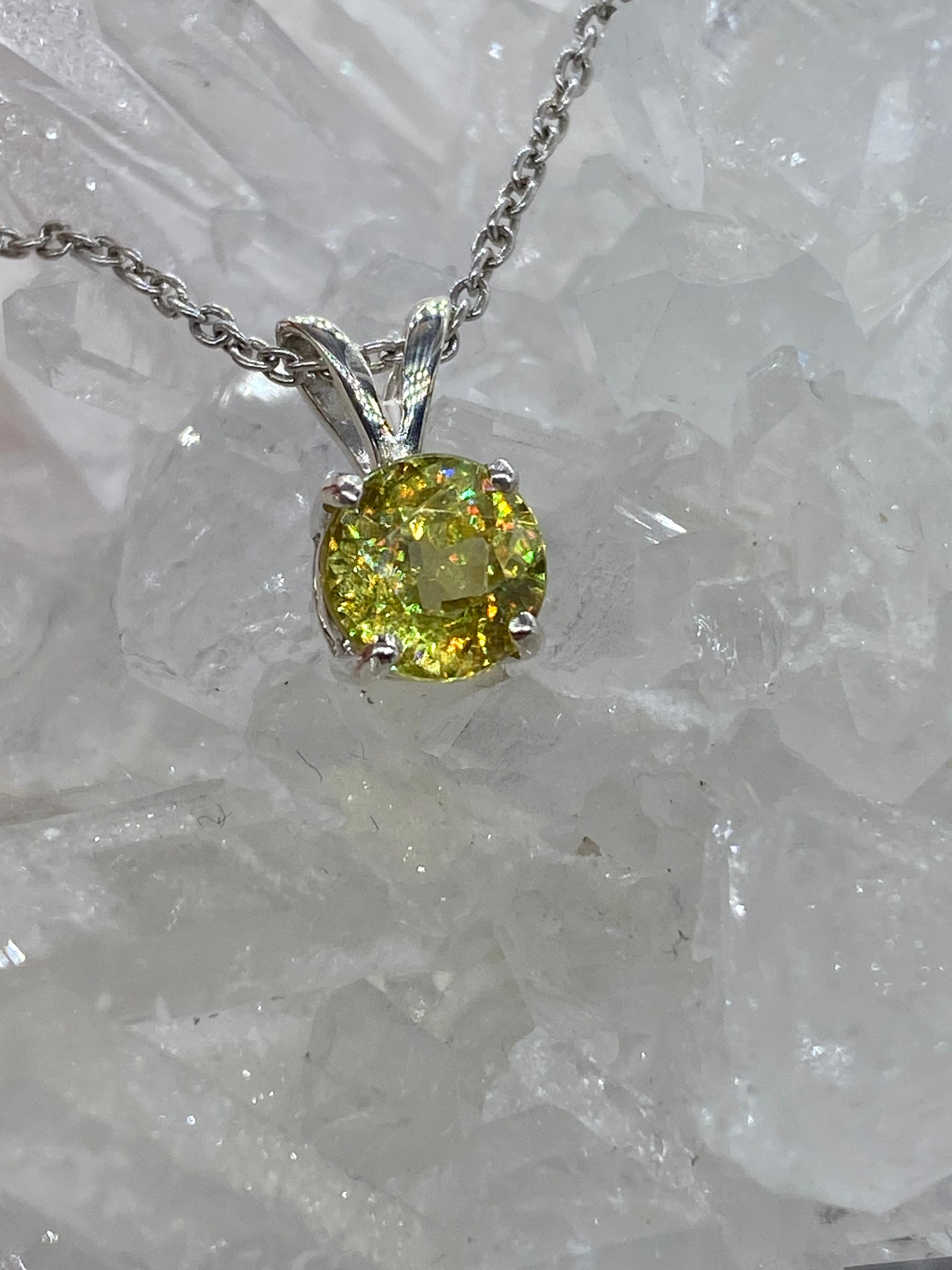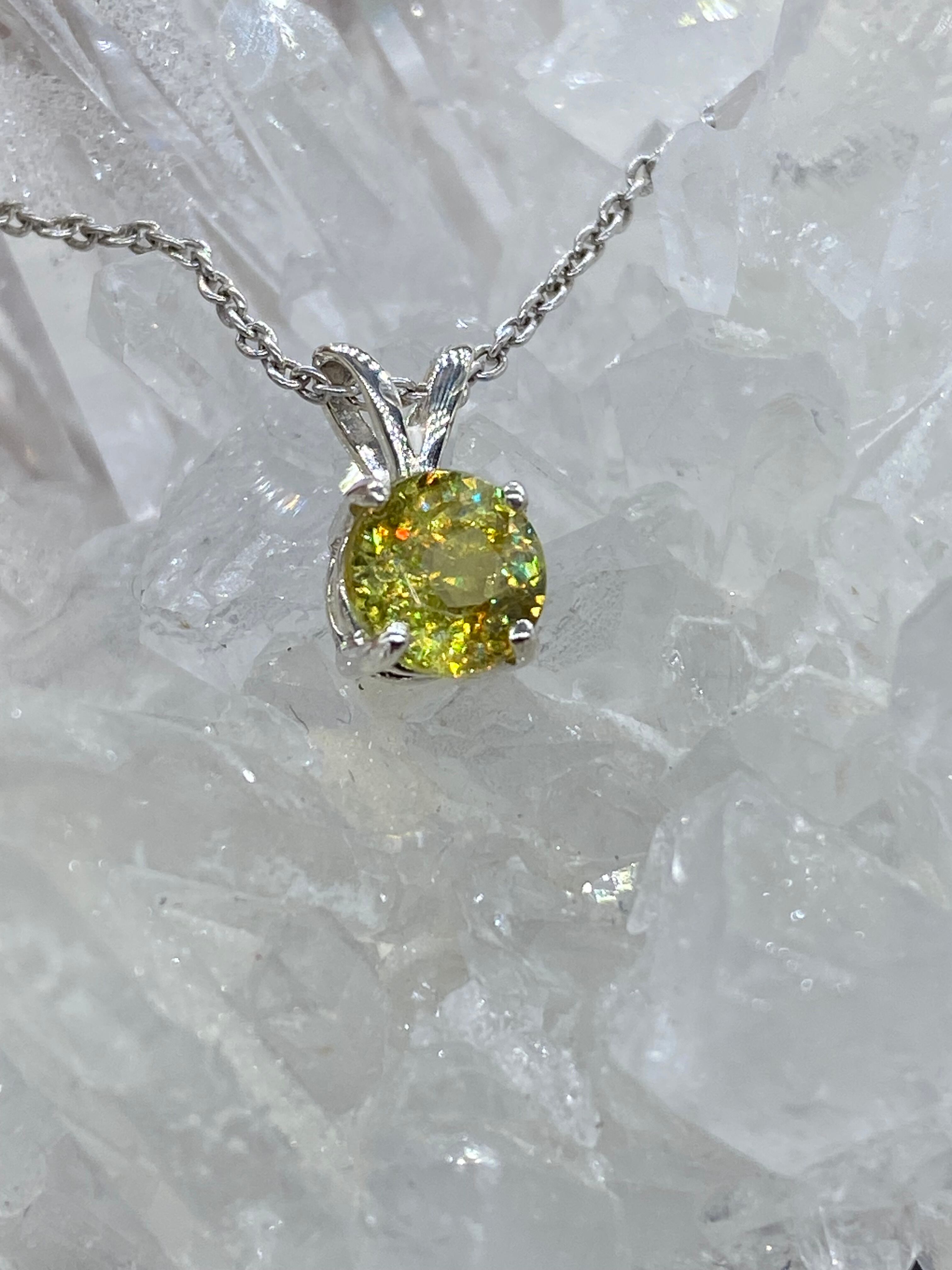 屈折率がとても高く、光の分散はダイヤモンドと同等かそれ以上のスフェーンはとにかく光ります。