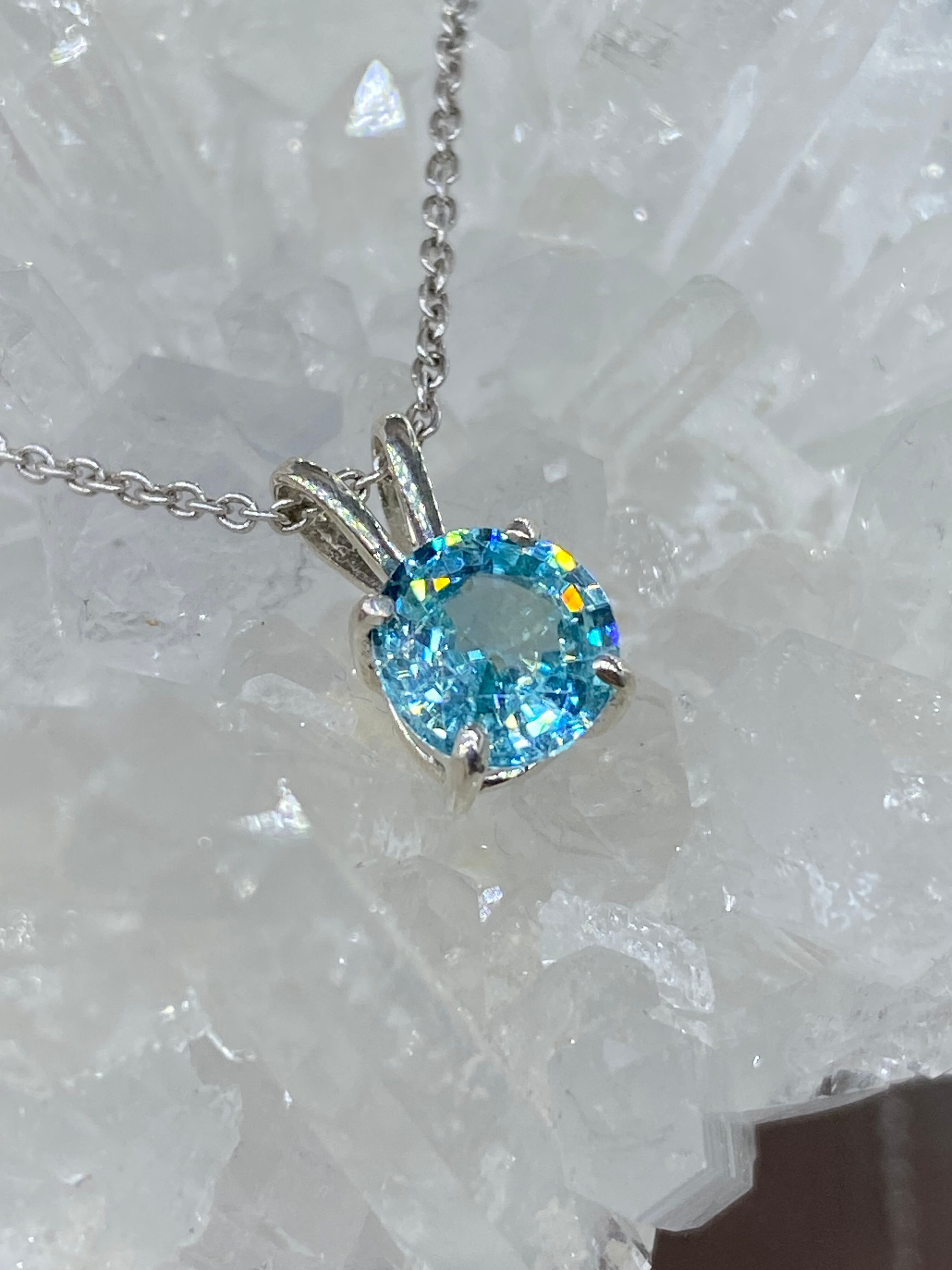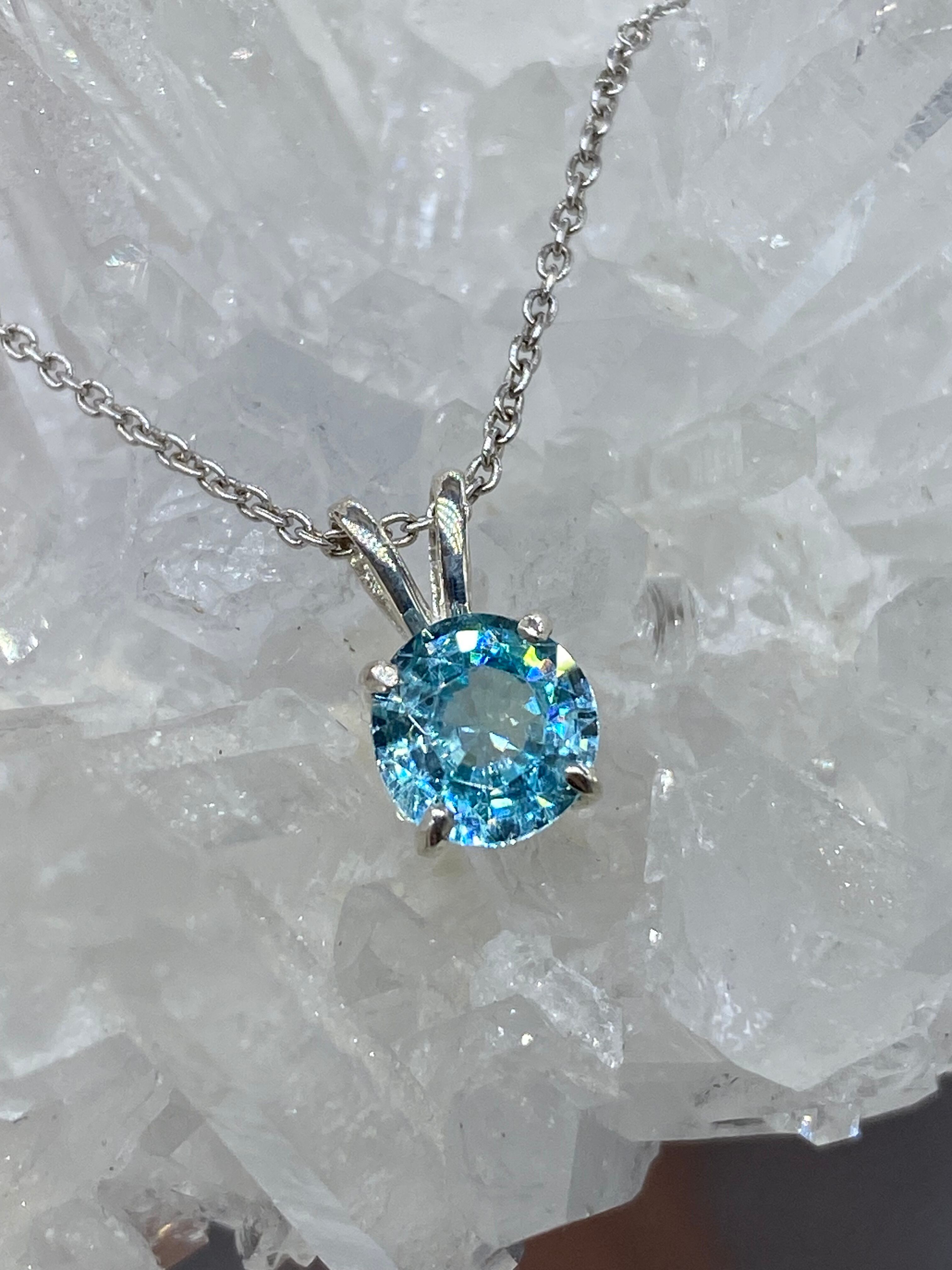 天然ブルージルコン(1.68ct ラウンド)のネックレス