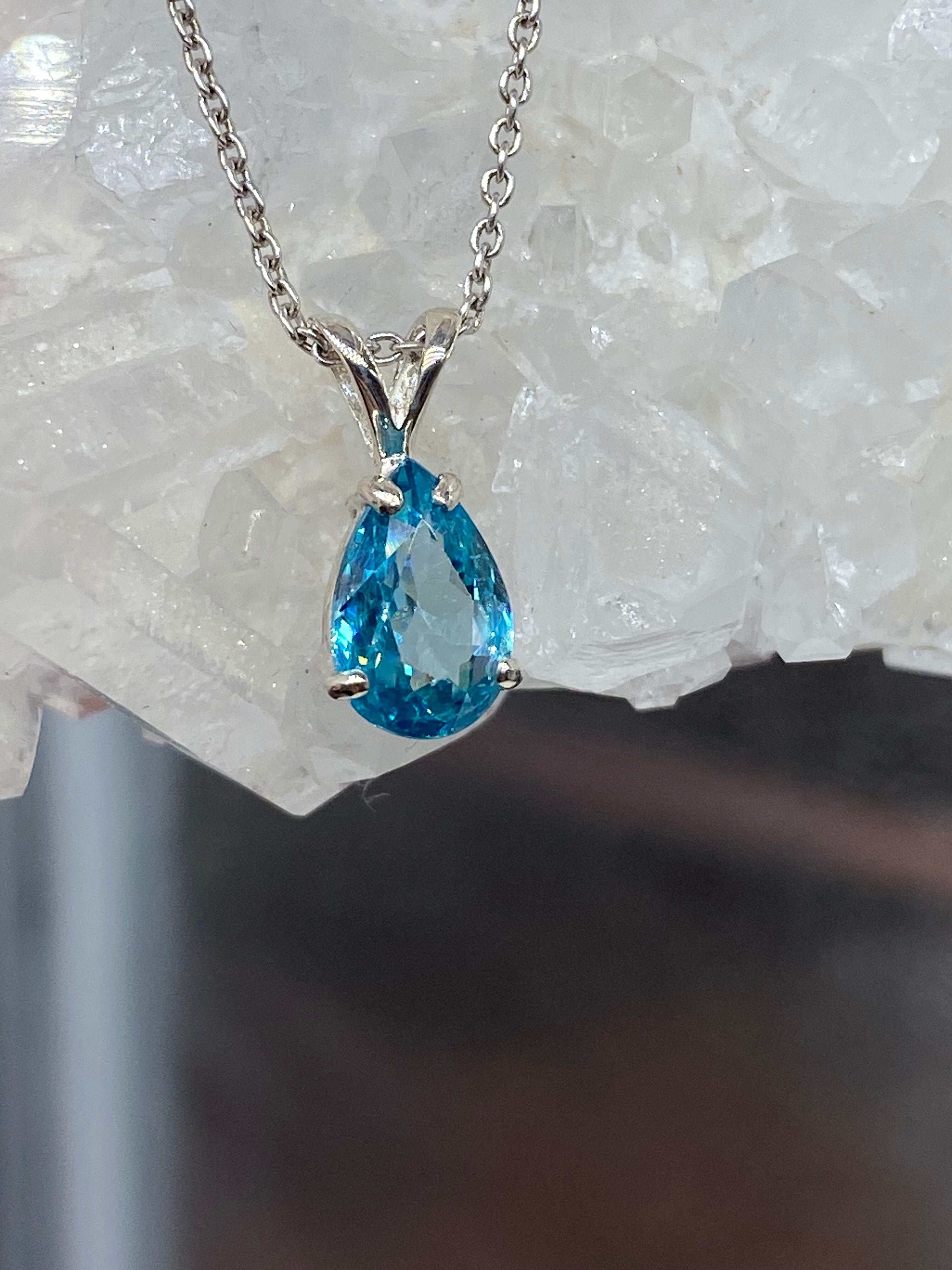 天然ブルージルコン(ペア1.98ct )のネックレス