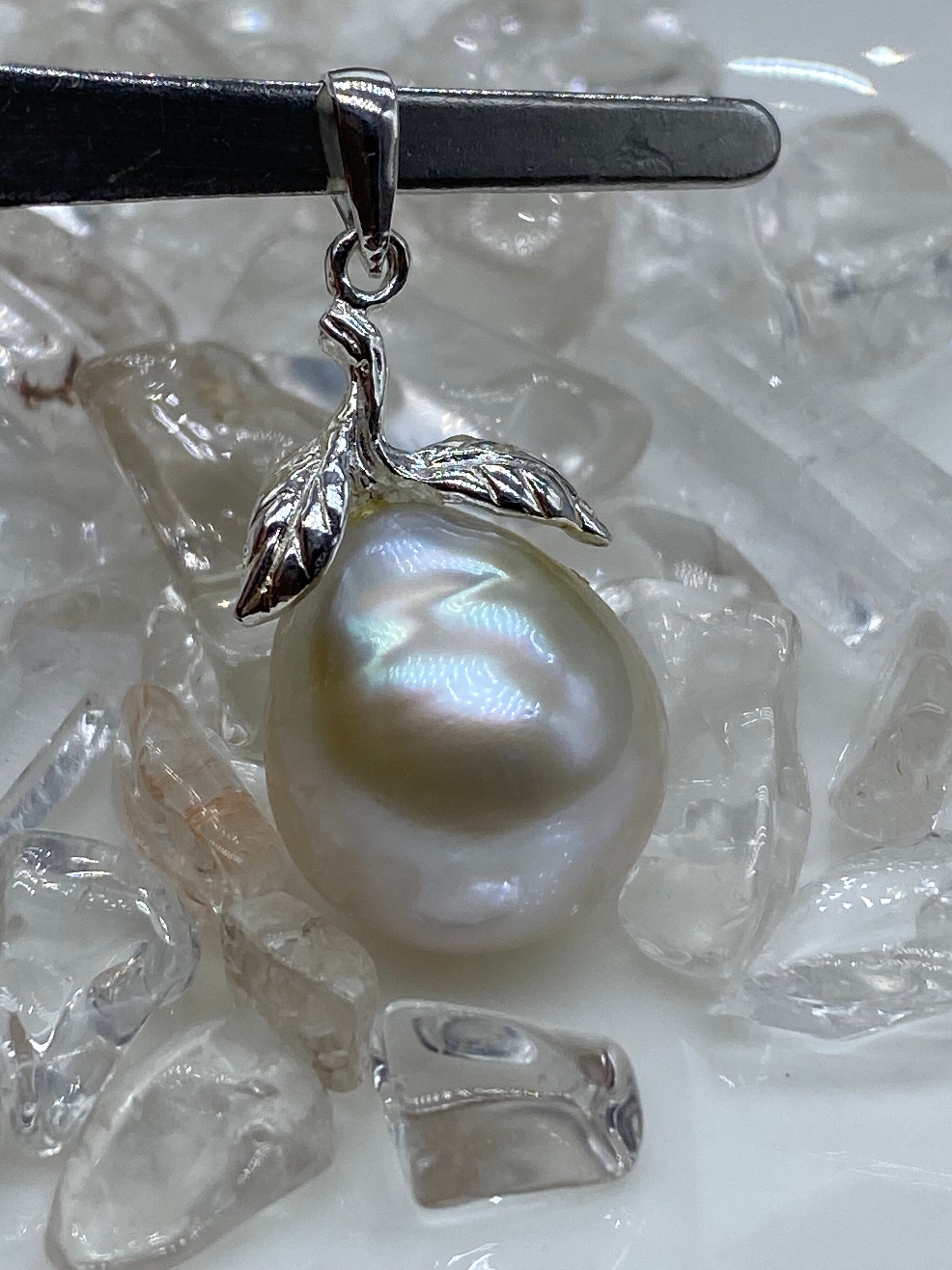 今回はこちらの、南洋白蝶真珠に、シルバー925の葉っぱと茎を付けて