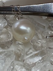 ホワイト系のバロック南洋白蝶真珠で一粒ネックレスを作りました。