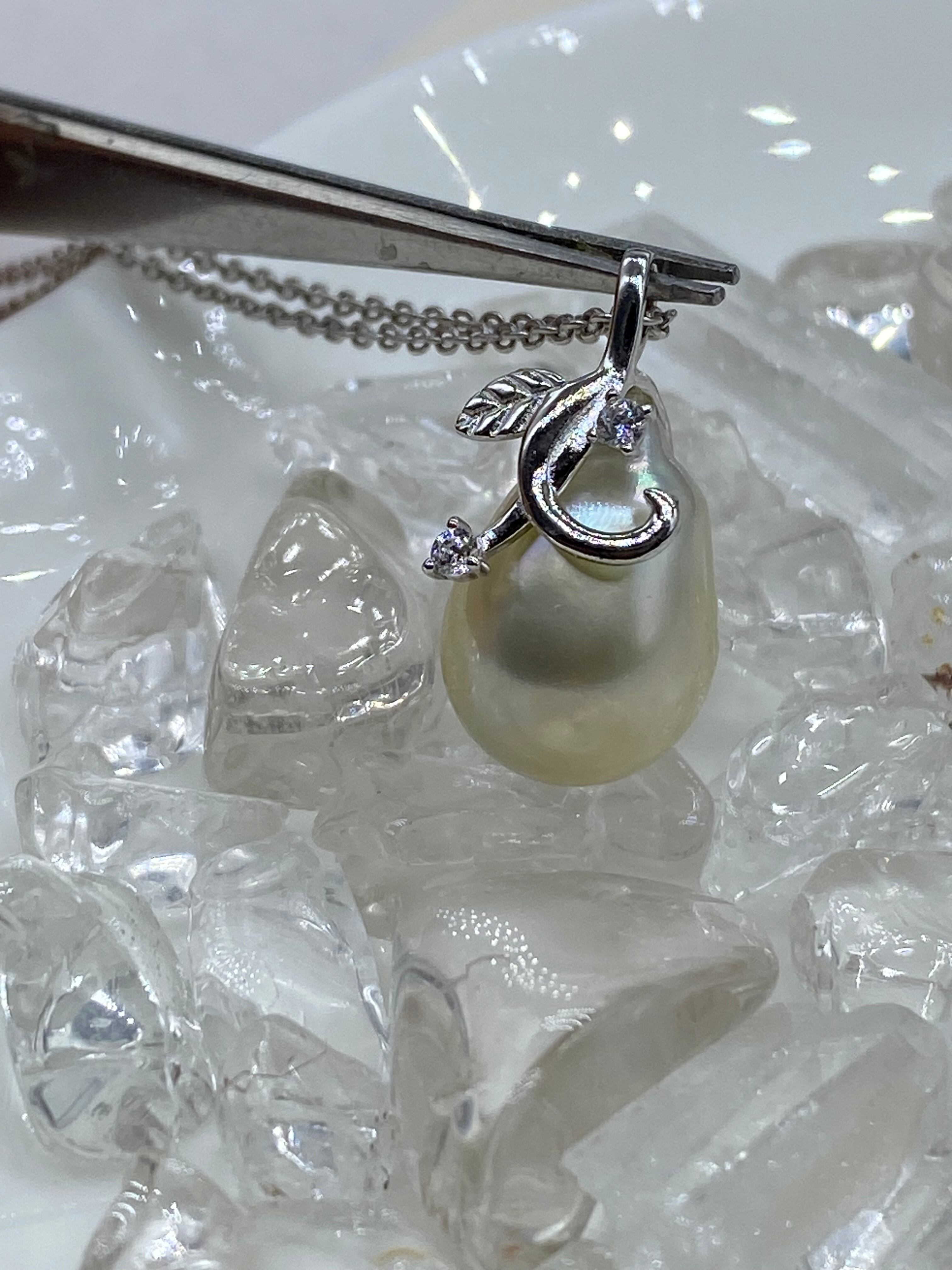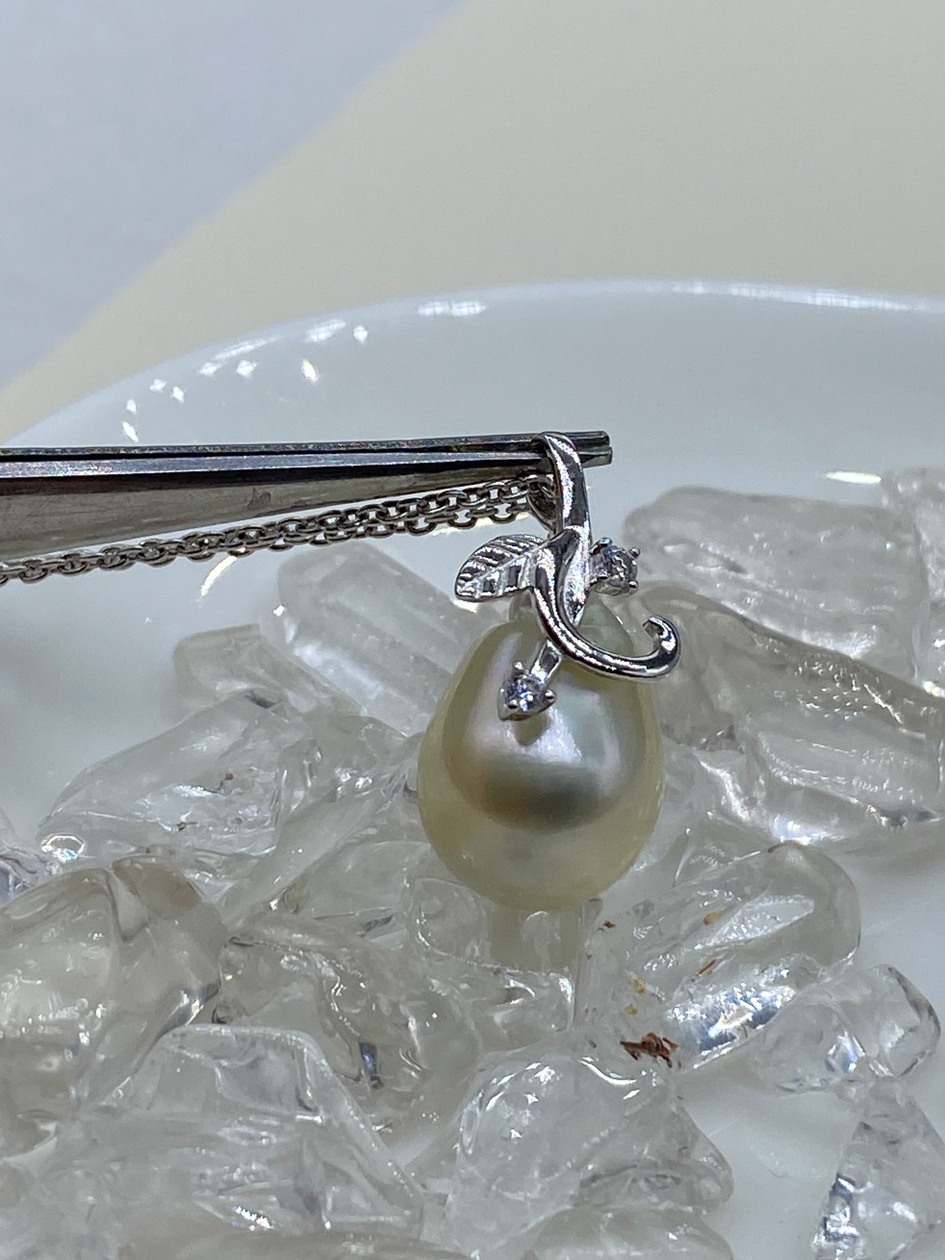 今回はこちらの、南洋白蝶真珠に、シルバー925の葉っぱと茎を付けて