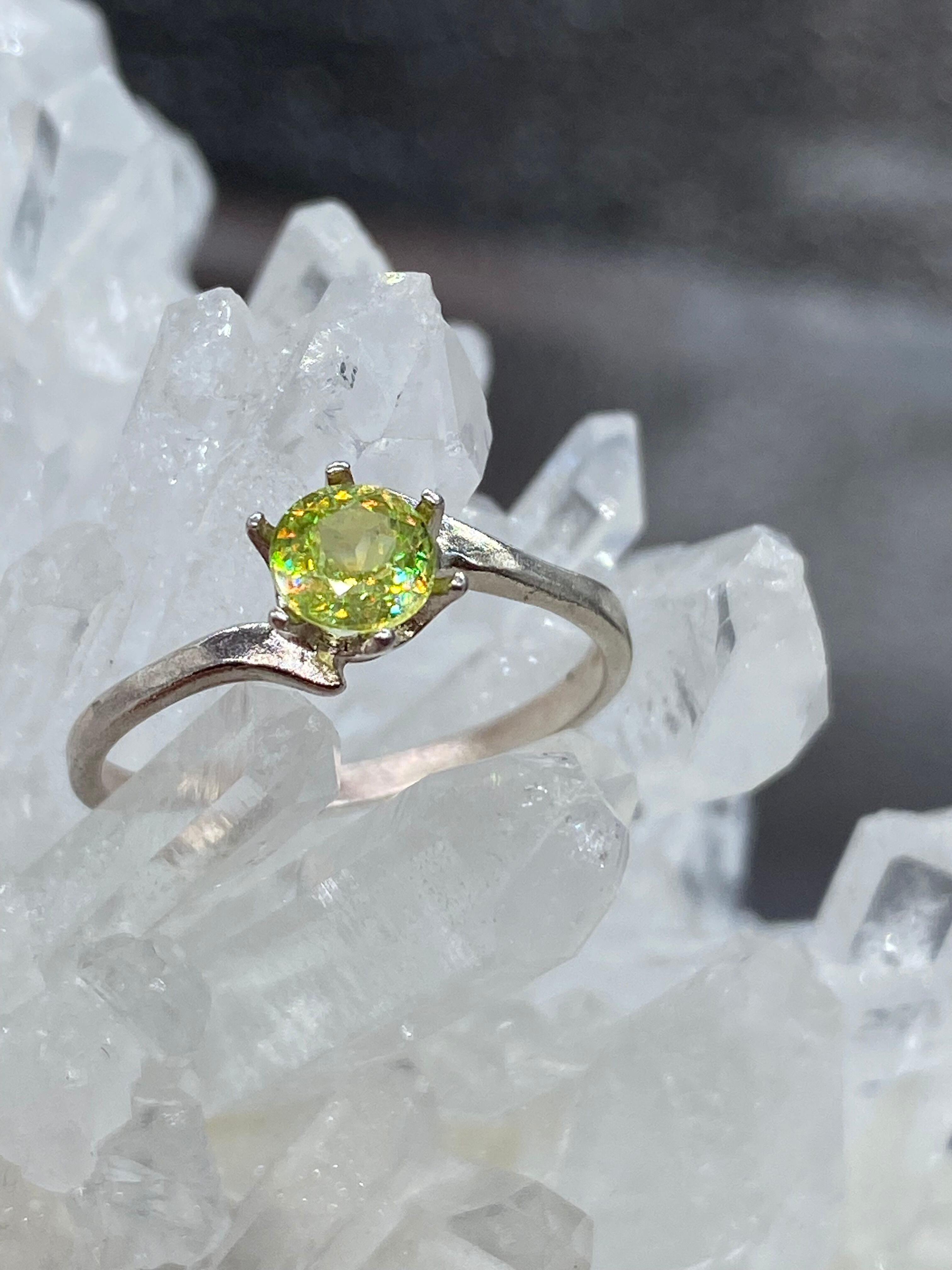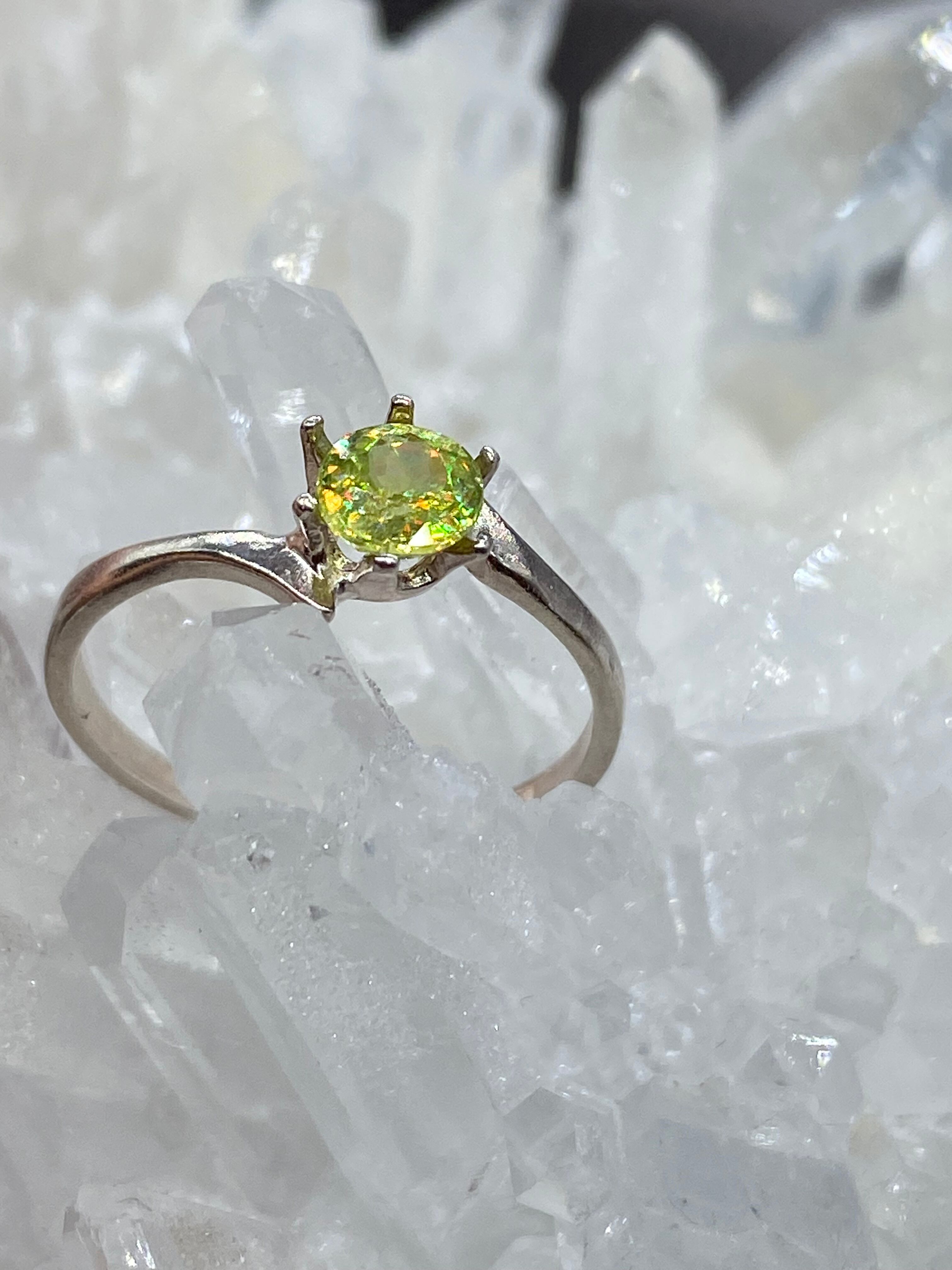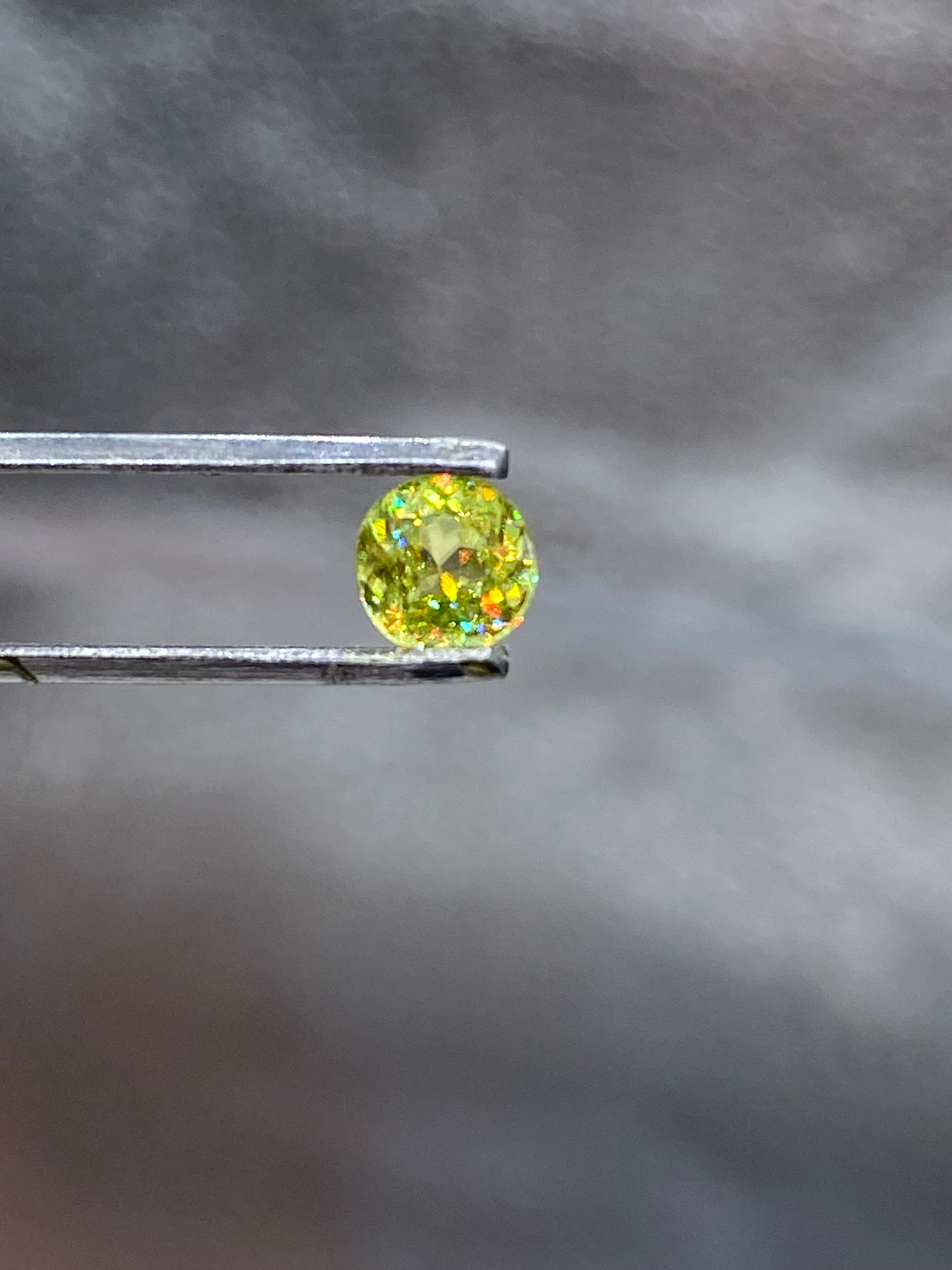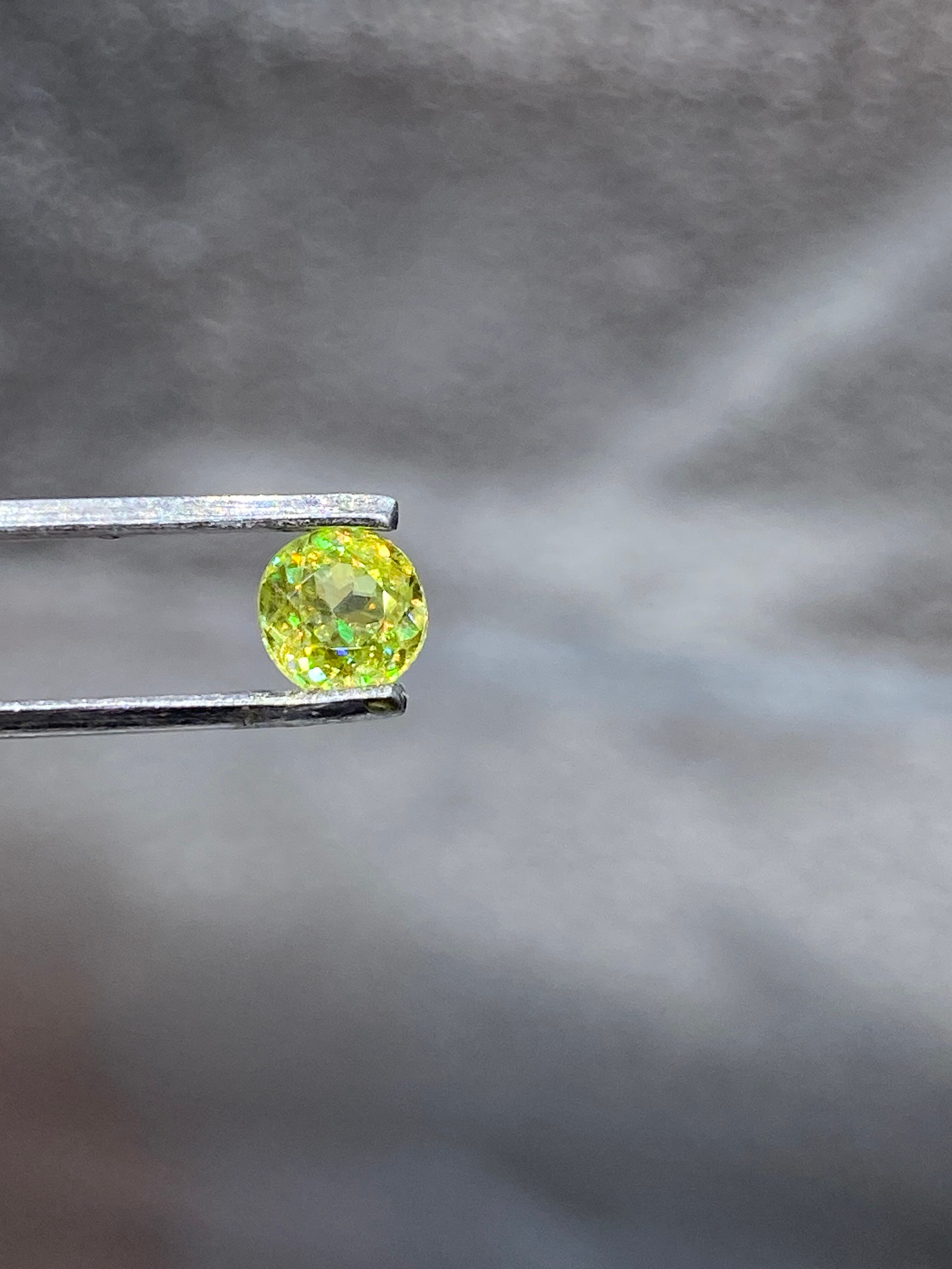 ぎらぎらに光ります。スフェーンには大きく分けてグリーン系 ブラウン系 イエロー系があります。