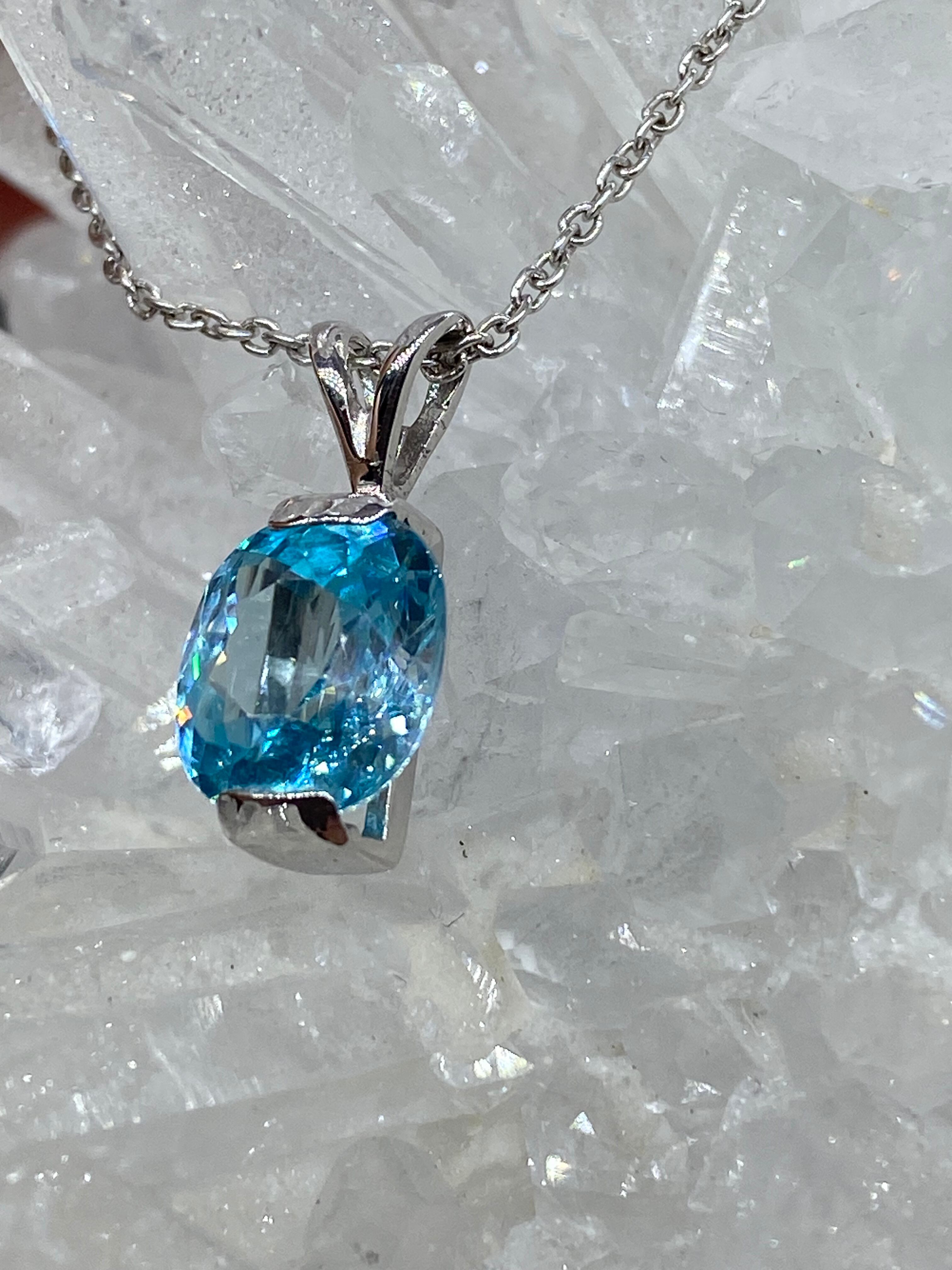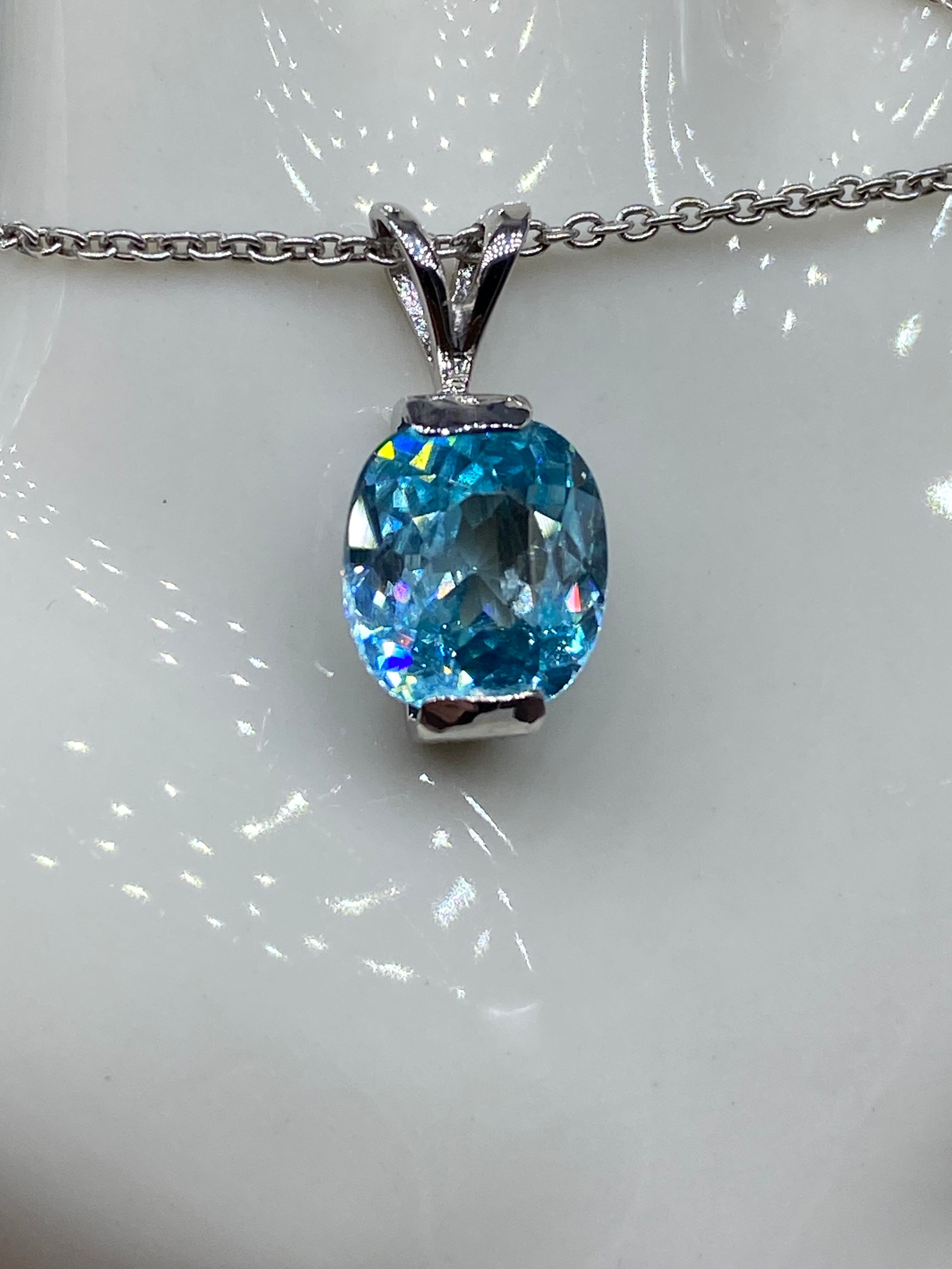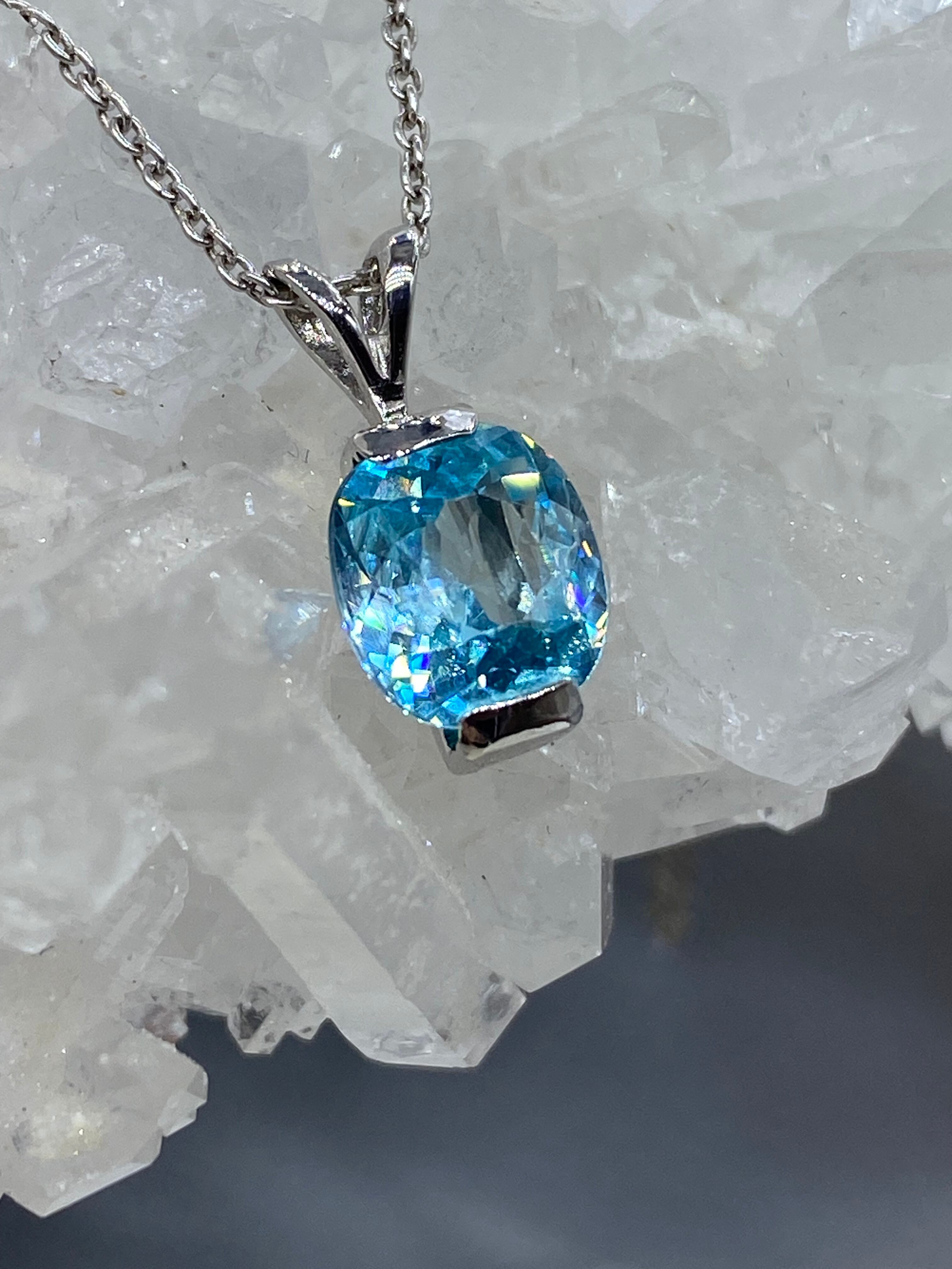 使用したジルコンは高品質のクッションカットのライトブルーの石。