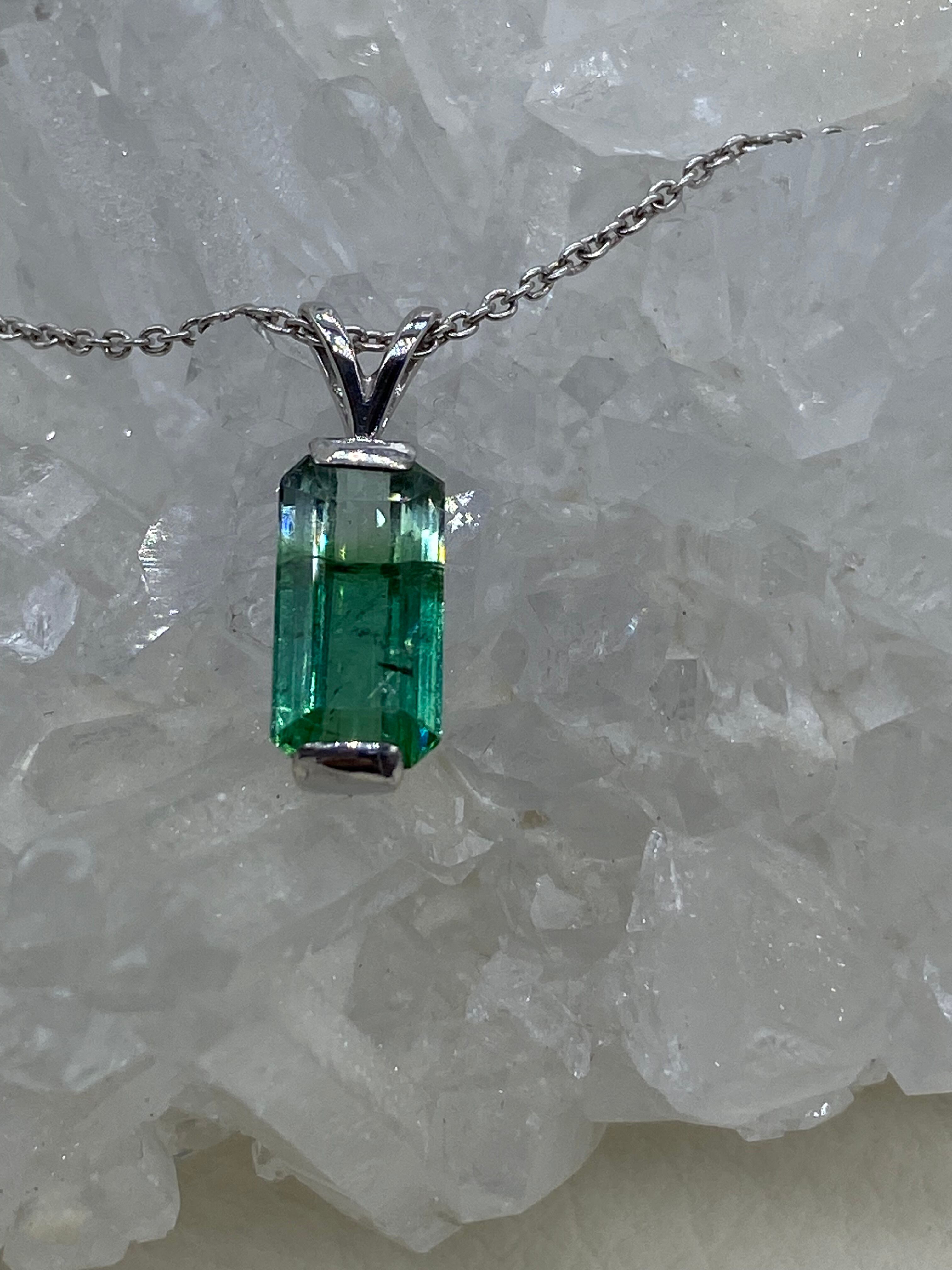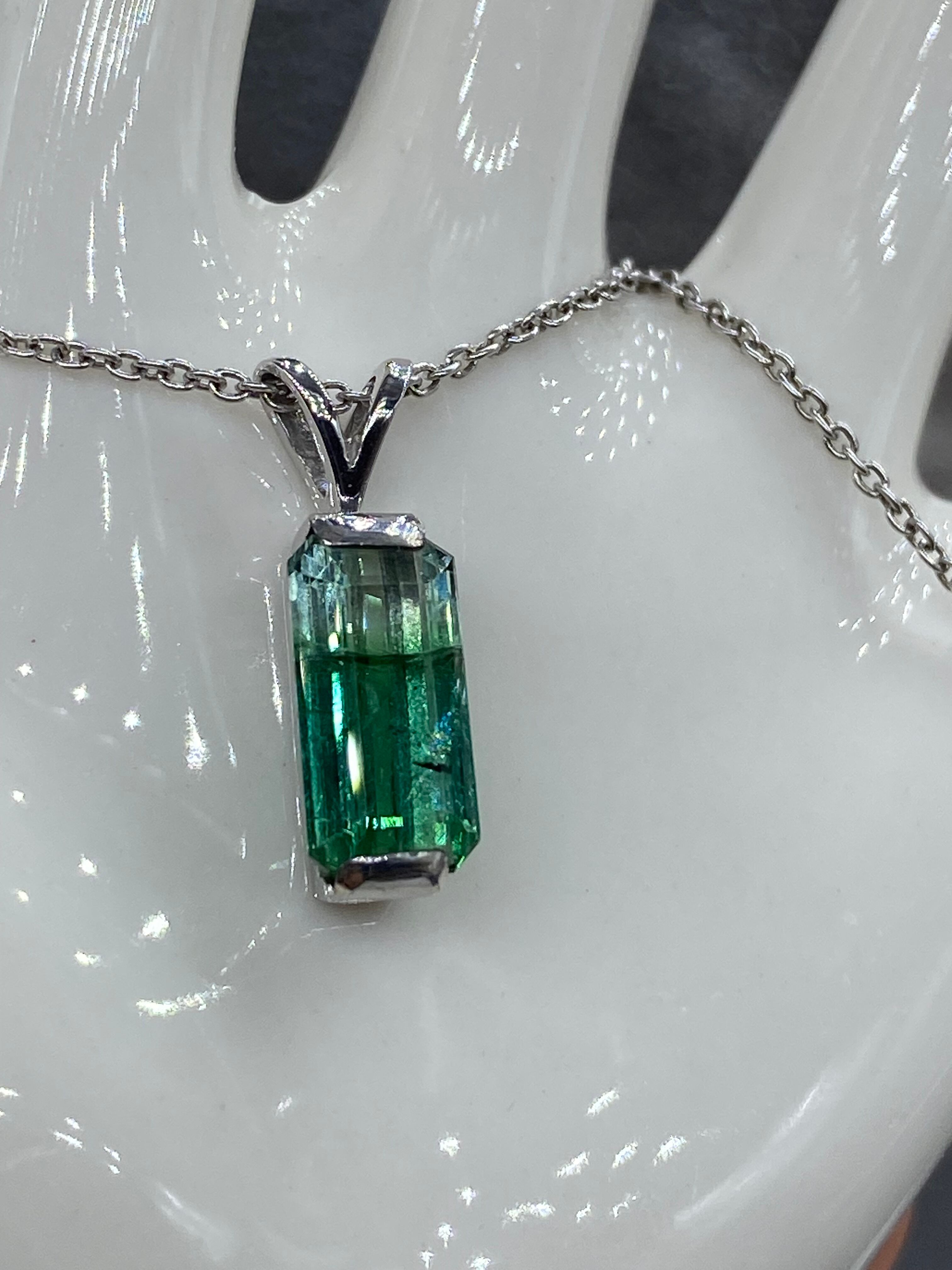 使用した石はモザンビーク産 オクタゴンカット11×6のバイカラートルマリン。